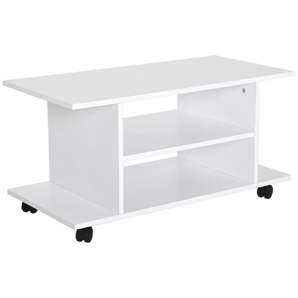 Meuble TV en bois blanc à roulettes 80x40x40 cm