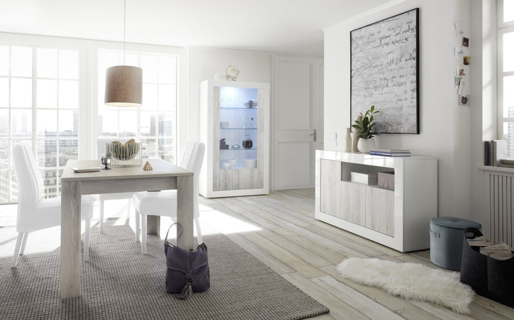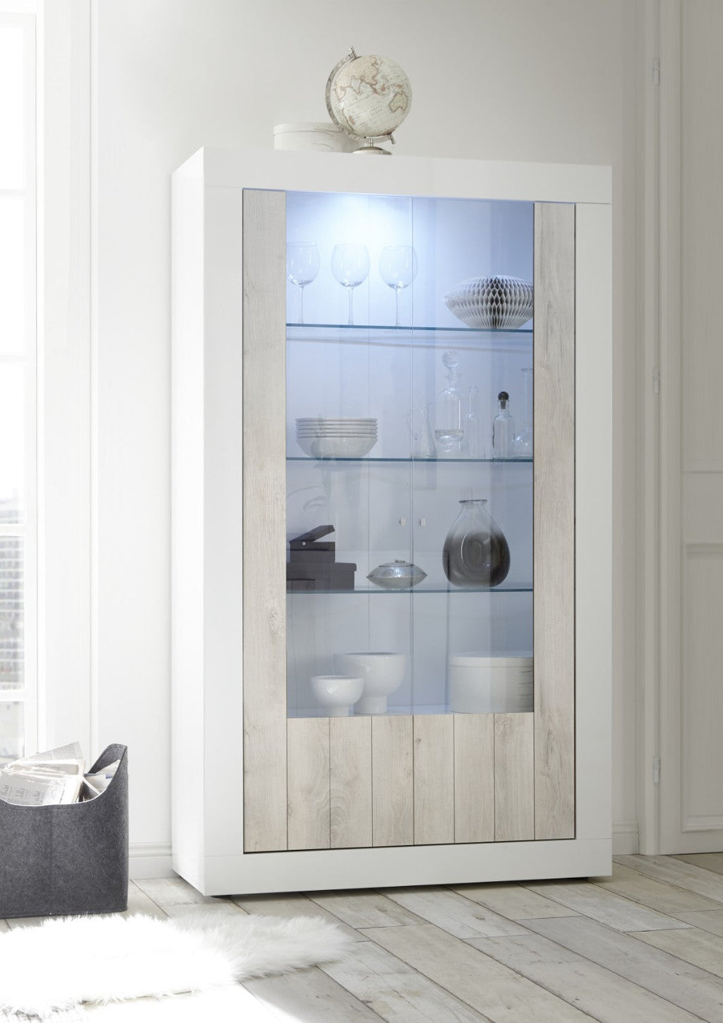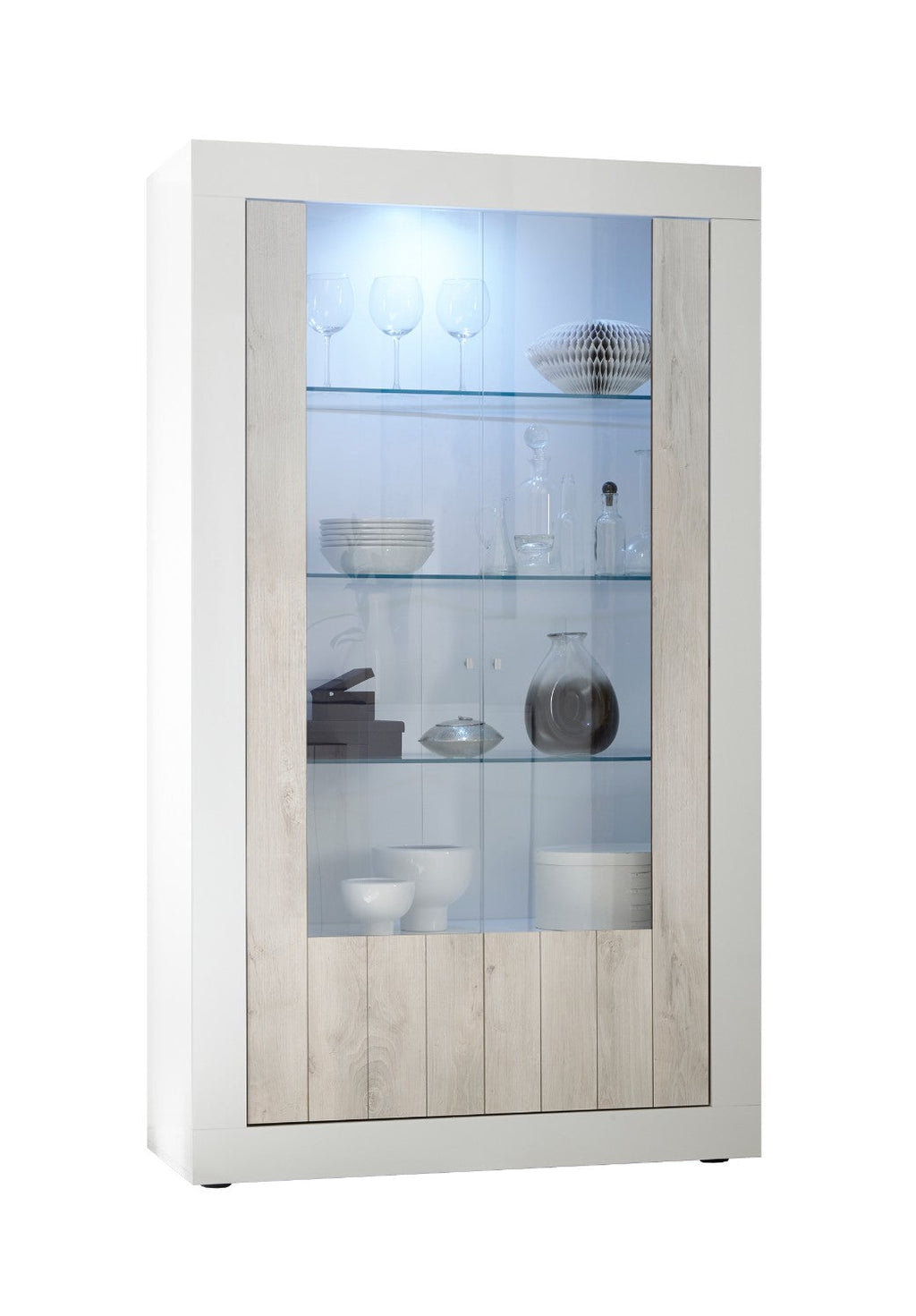 Vitrine 2 portes 110x42x191 cm en bois TFT Lipari, blanc et pin