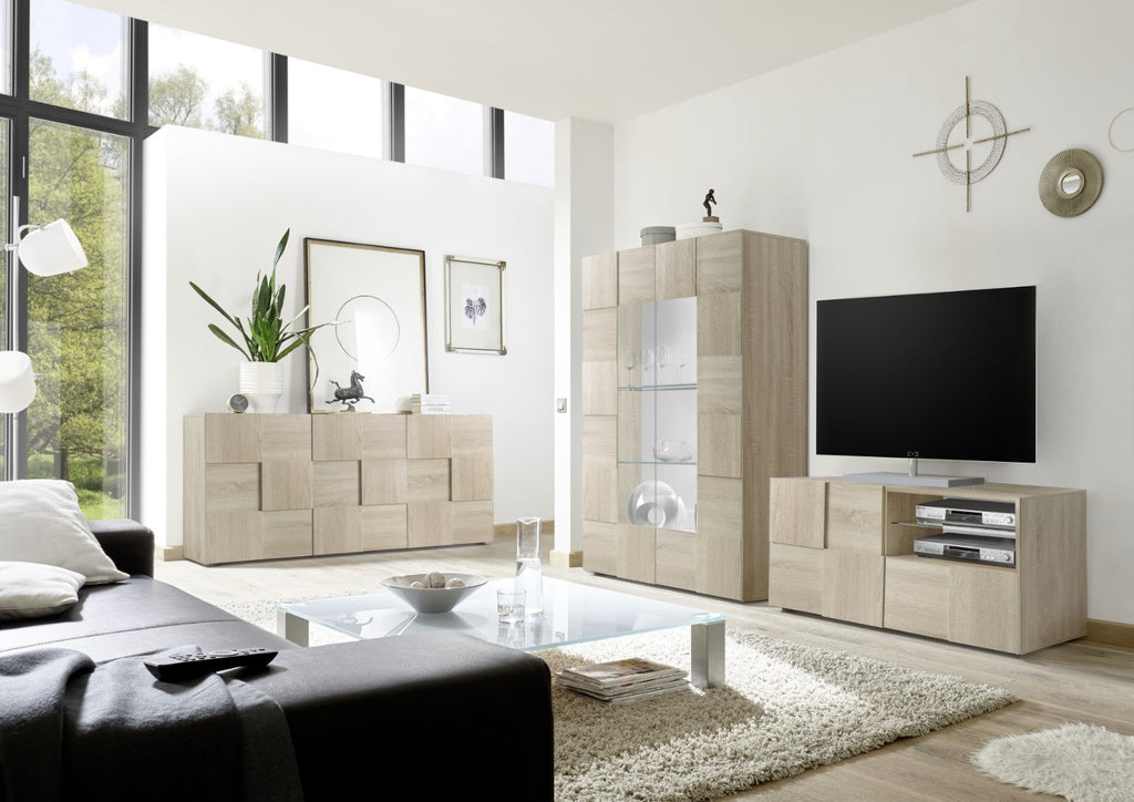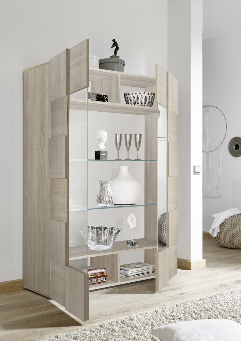 Vitrine 2 Portes 120x42x166 cm en Bois TFT Checkers Chêne Samoa