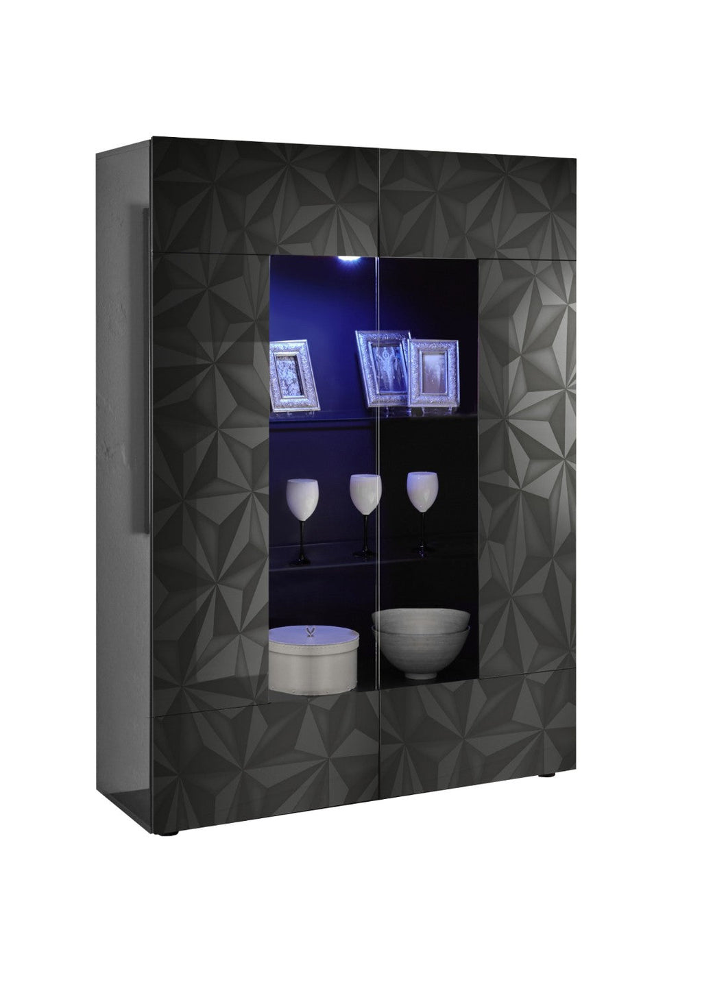Meuble Vitrine 2 Portes 120x42x166 cm en TFT Praga Bois Noir Brillant