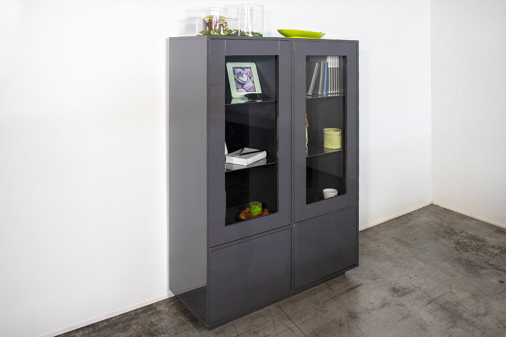 Mobile Vetrina 4 Ante 100,1x41,4x146 cm Bloom Grigio Antracite Laccato Lucido
