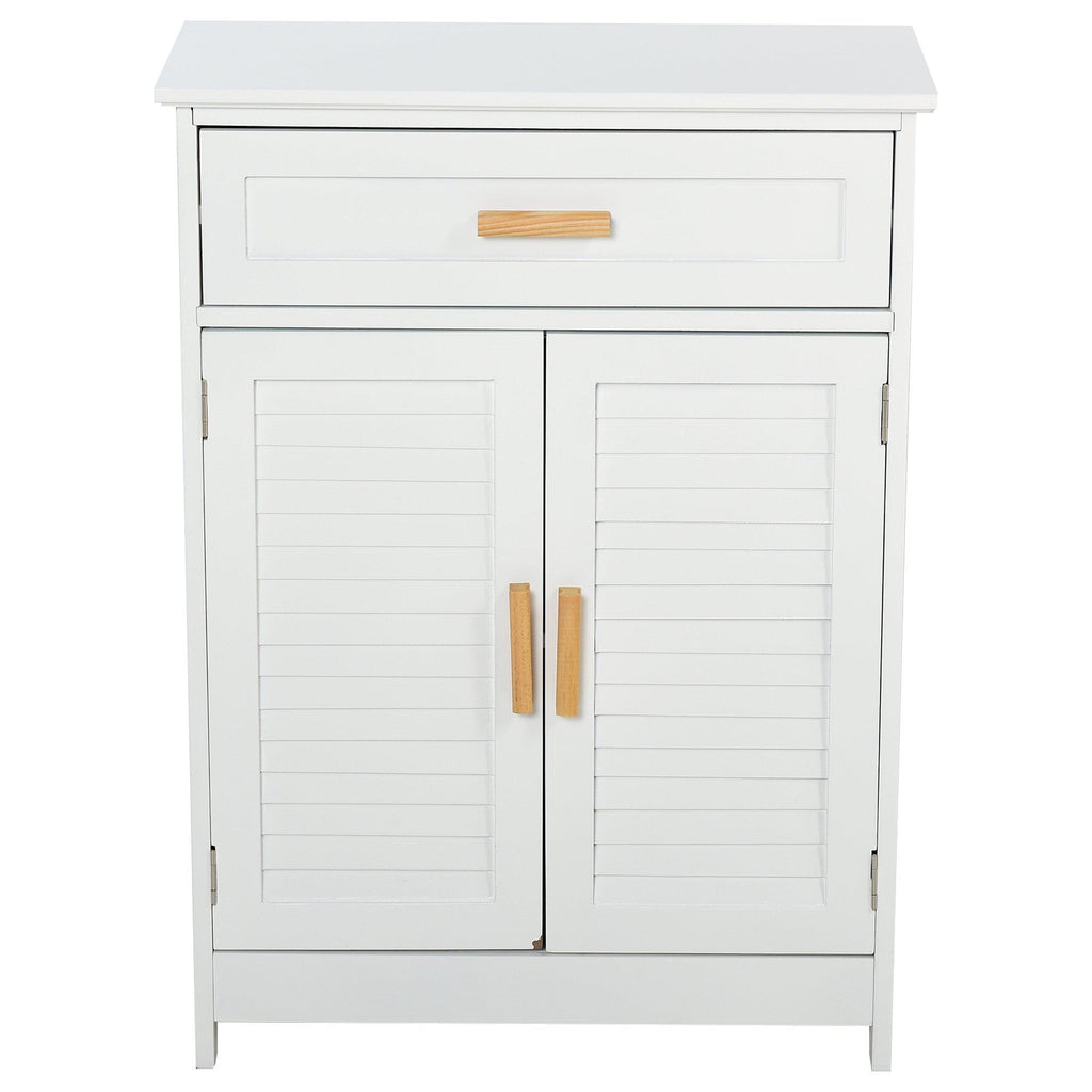 De grande portée, c'est le meuble de salle de bain de Benzoni. Équipé d'un tiroir, d'une étagère amovible et d'un grand espace de rangement, il pourra presque ranger tous vos essentiels de salle de bain : savons, serviettes, mouchoirs, etc. Fabriqué en matériau MDF E1 et en bois de pin à surface blanche, il est durable, naturel et garde l'air frais dans votre maison. En outre, il peut fonctionner comme un élément décoratif délicat dans votre maison. L'armoire ne prendra pas beaucoup de place et peut garder votre salle de bain propre et organisée.