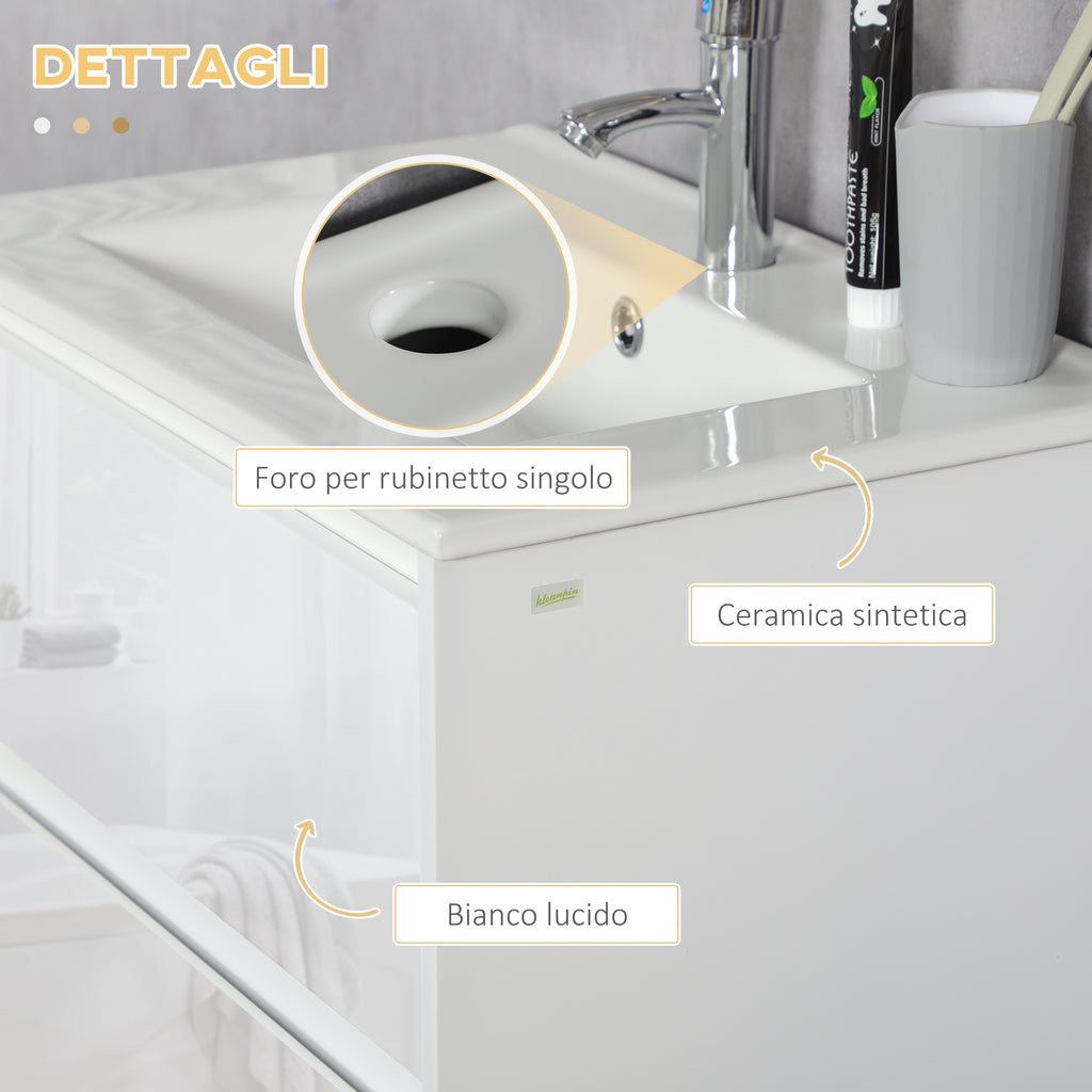 - DESIGN ELEGANTE: Valorizza il tuo bagno con il nostro mobiletto moderno con corpo bianco lucido e uno splendido lavabo in ceramica sintetica, ideale per qualsiasi bagno moderno!