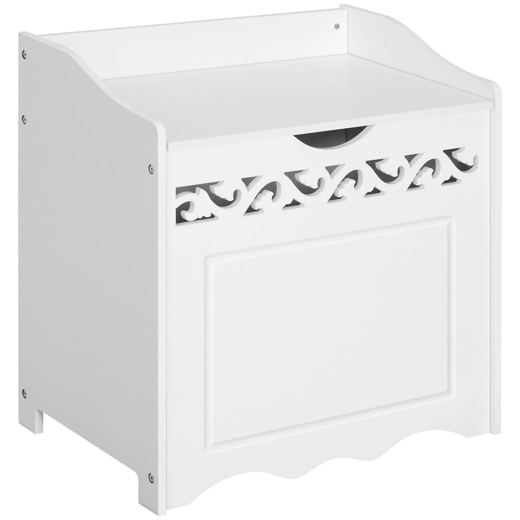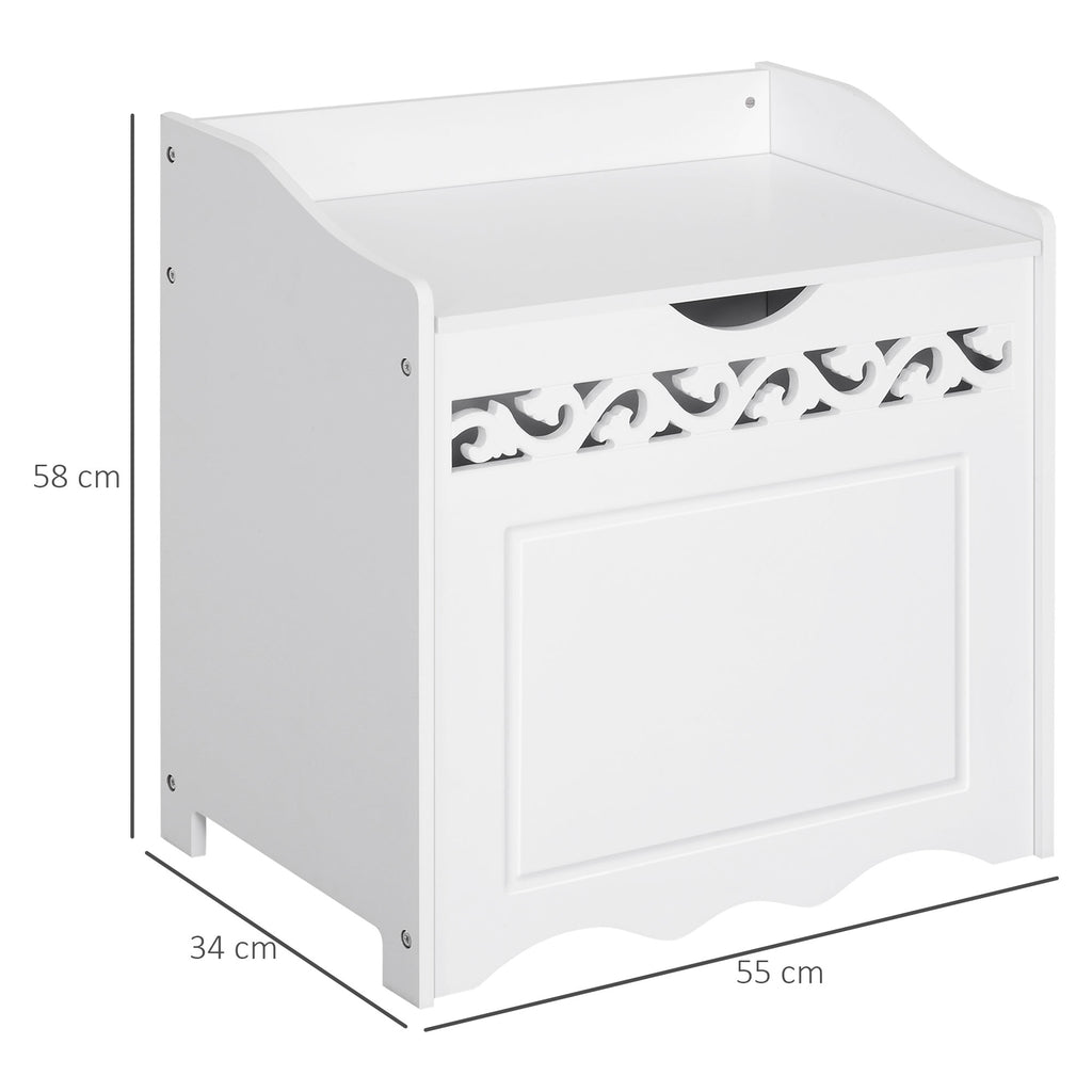 Meuble de salle de bain en bois fleuri blanc Panier à linge 55x34x58 cm