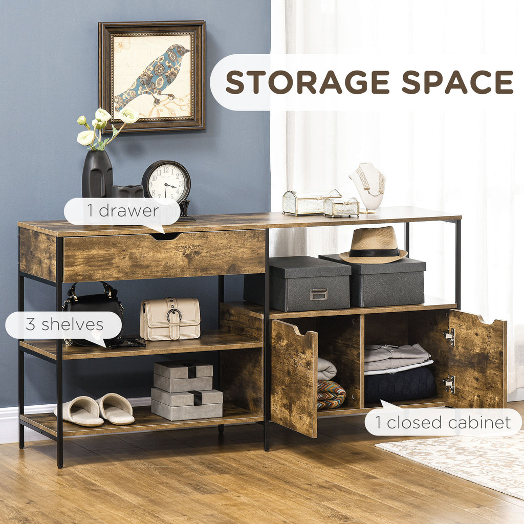 Ajoutez une touche de style et de praticité aux espaces de votre maison avec le buffet bas. Fabriqué en bois et en acier dans un style industriel, il vous offre beaucoup d'espace pour tout garder en ordre, des livres aux décorations. Le revêtement en mélamine offre une finition lisse, résistante aux éclaboussures et facile à nettoyer. Enrichissez le style de votre salon et de votre salon avec ce meuble.