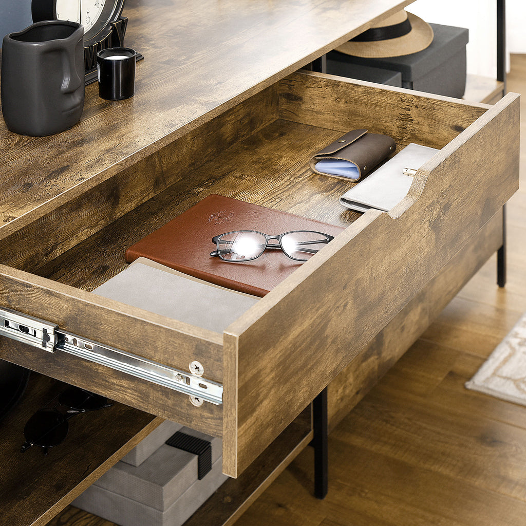 - STYLE INDUSTRIEL : Les panneaux effet bois rustique et la structure en acier noir rendent ce meuble de salon élégant et original