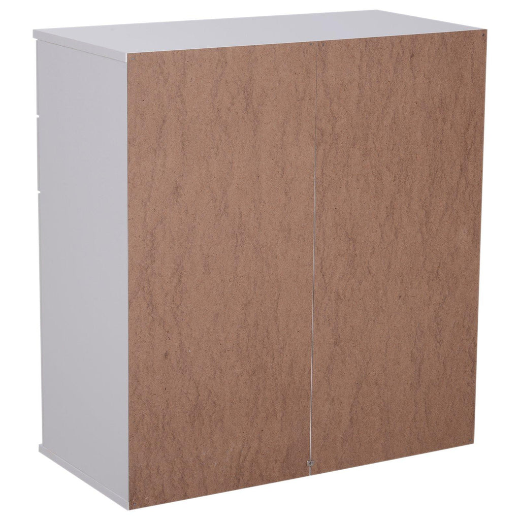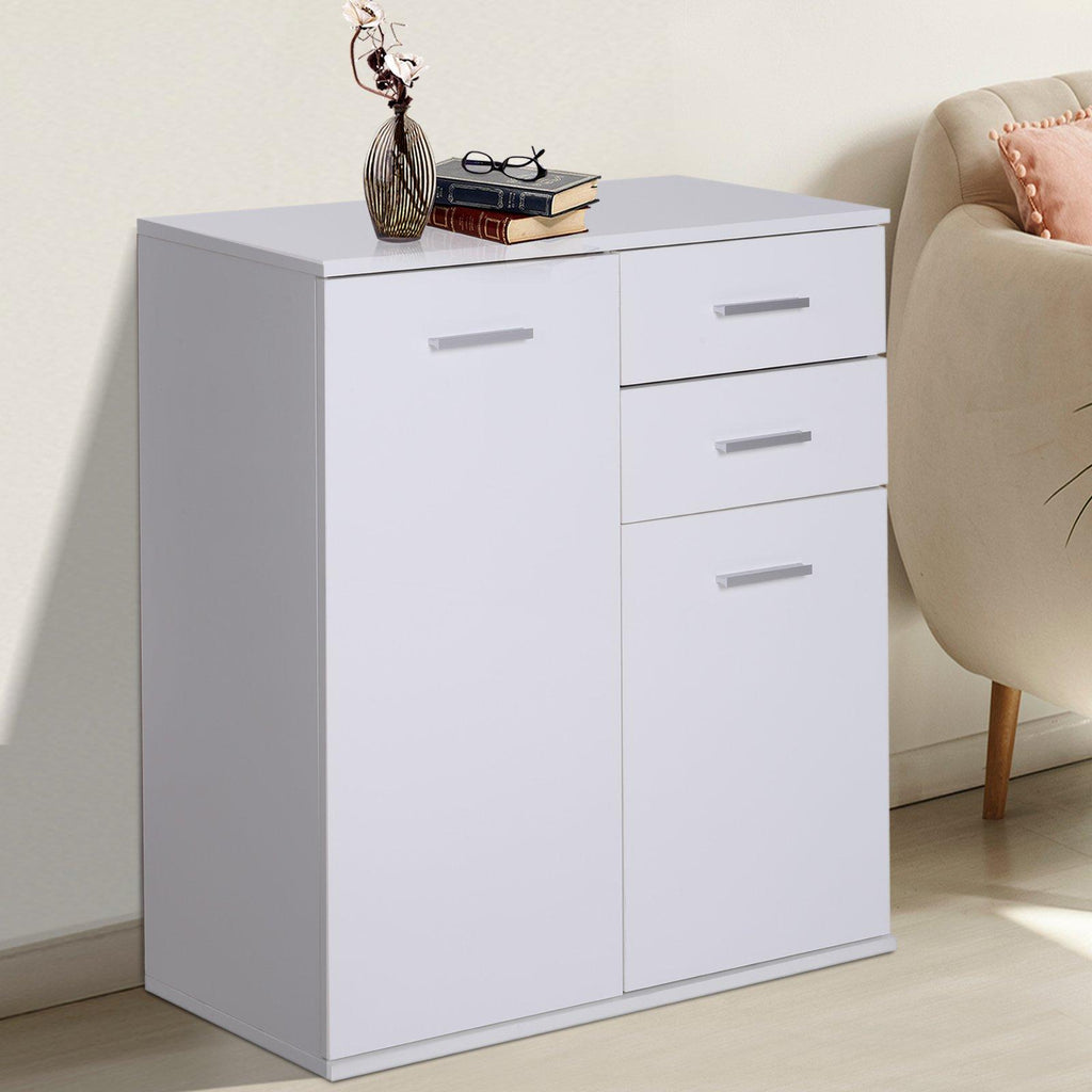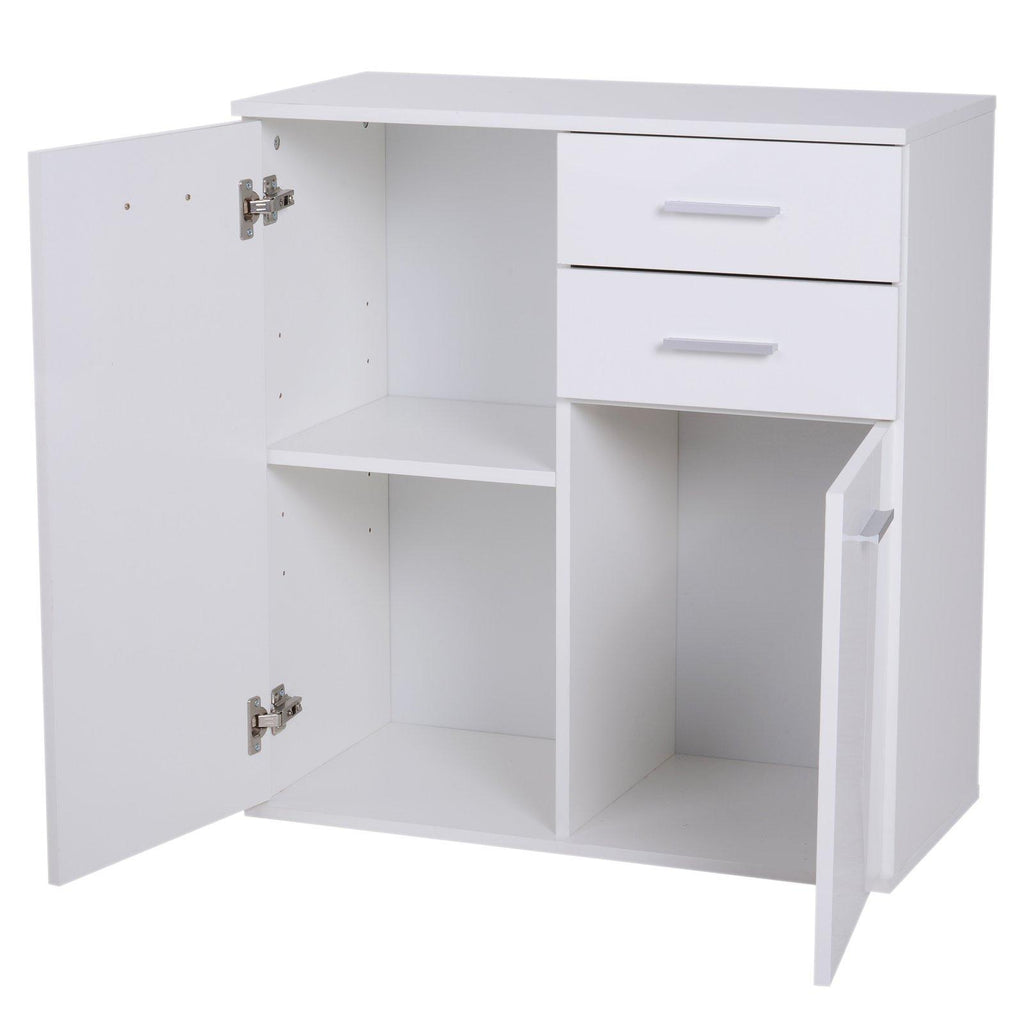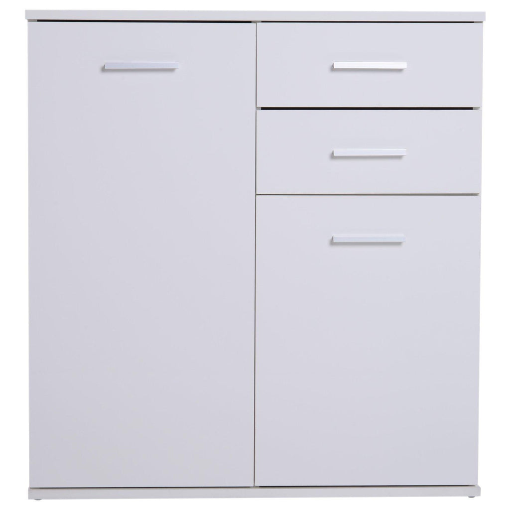 Meuble Commode 2 Tiroirs 2 Portes avec Etagère Ajustable en Bois Blanc 71x35x76 cm