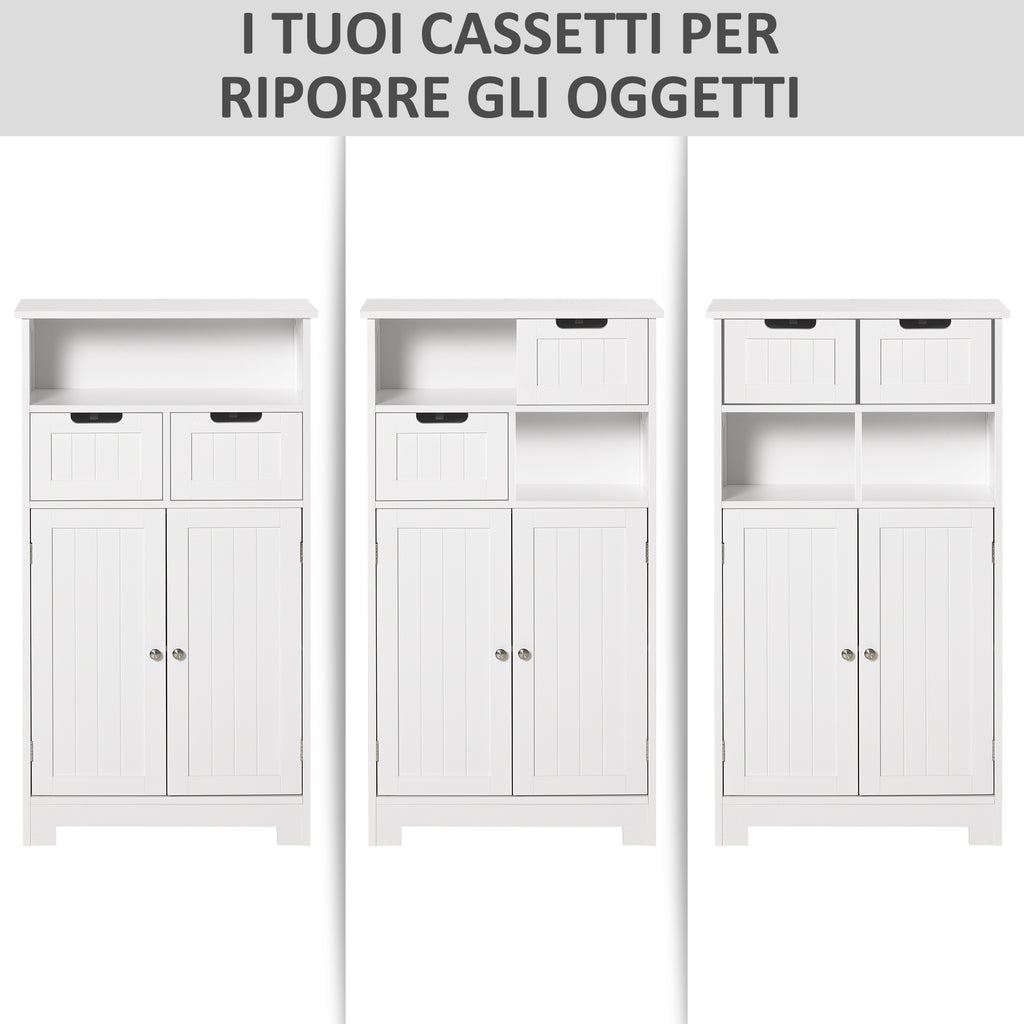 Meuble de Salle de Bain 2 Portes 2 Tiroirs 60x30x108,8 cm en MDF Blanc
