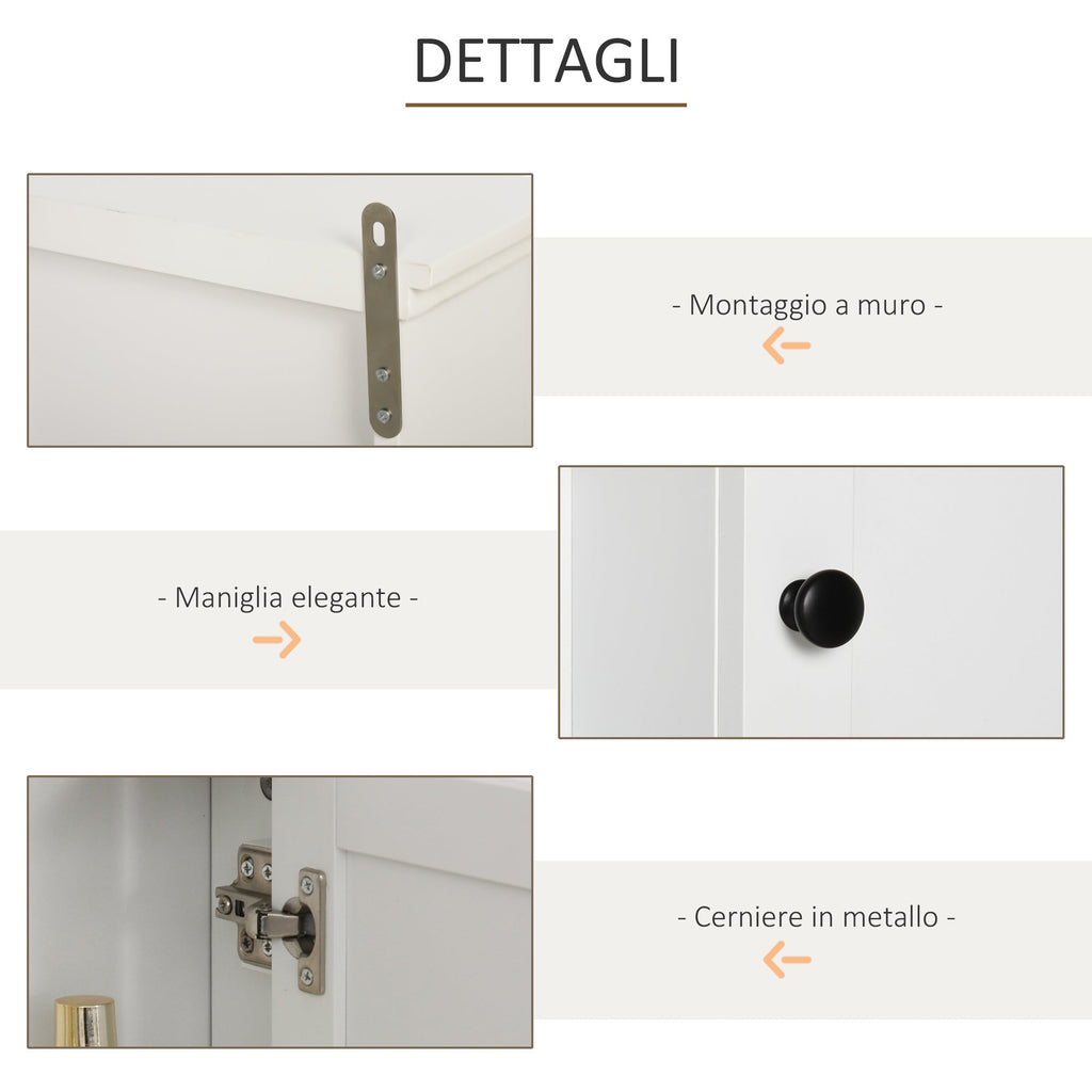 Armoire Murale Gain de Place 4 Portes Étagères en Bois Blanc 53x14,5x50,5 cm