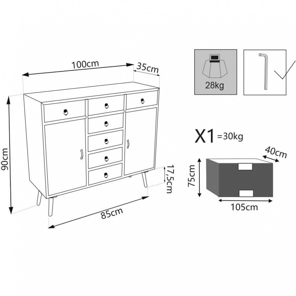 Armoire Laval 100x35x90 h cm en bois multicolore