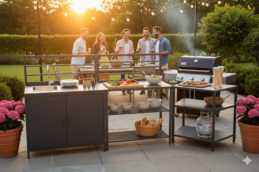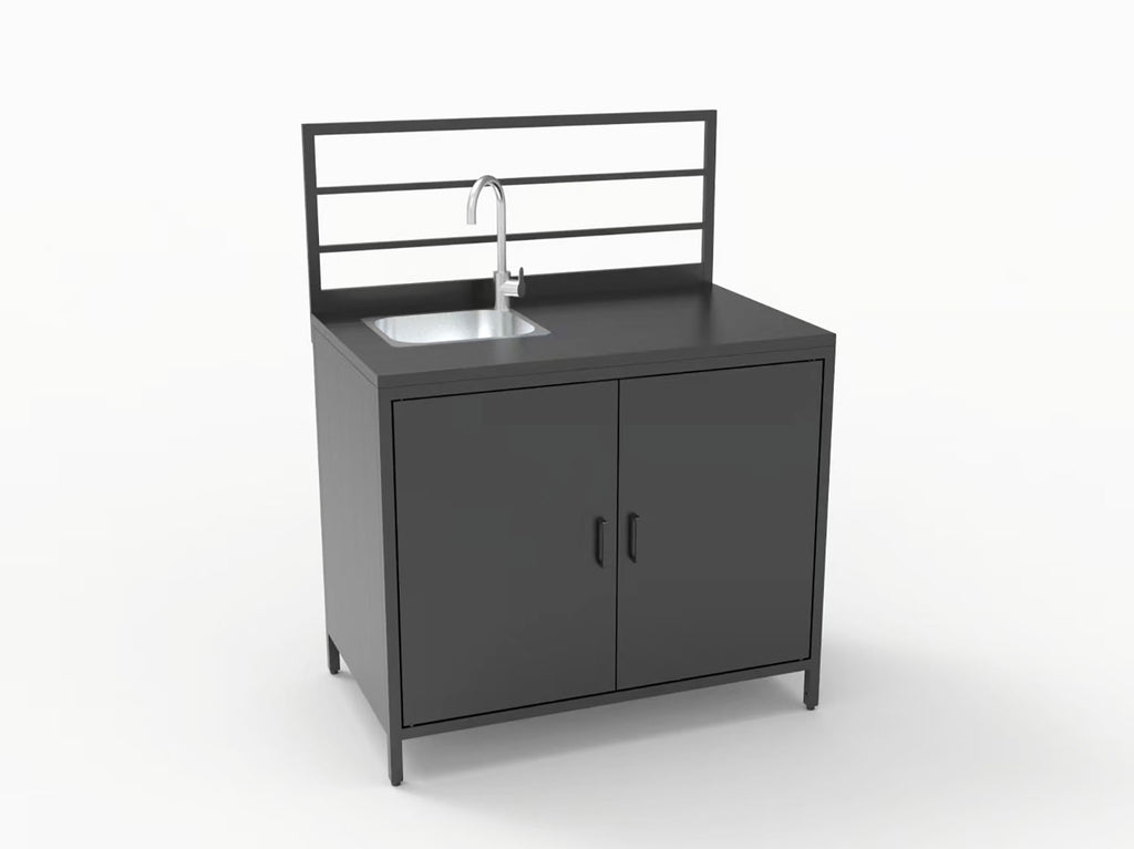 Modulo Componibile Lavello Ompagrill con Rubinetto in Acciaio Inox 100x61,5x130 cm con Piano di Lavoro e Armadietto in Alluminio Verniciato Nero