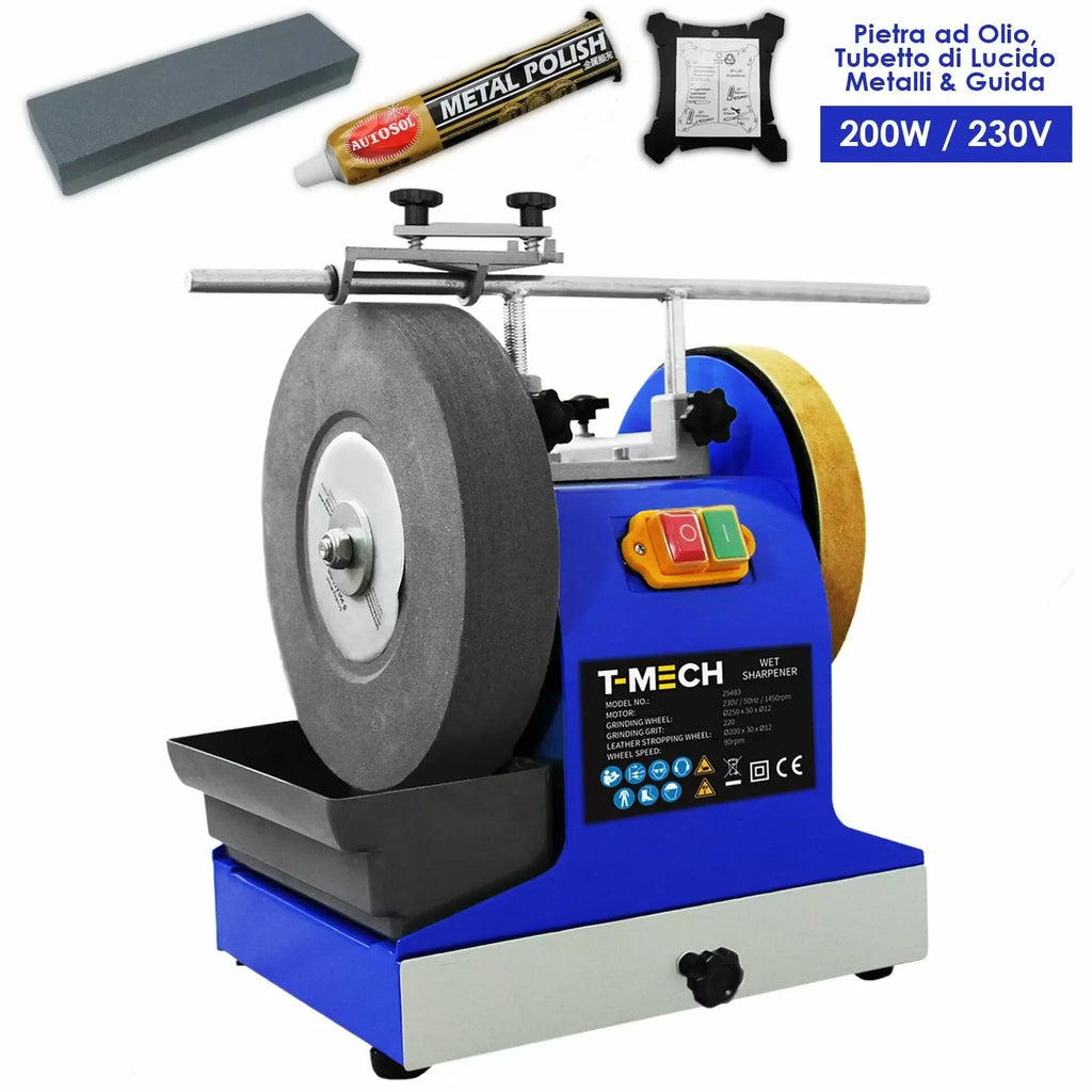 - Affilatrice ad acqua per affilare i vostri attrezzi con due posizioni di supporto e guida angolare