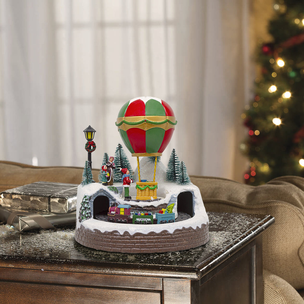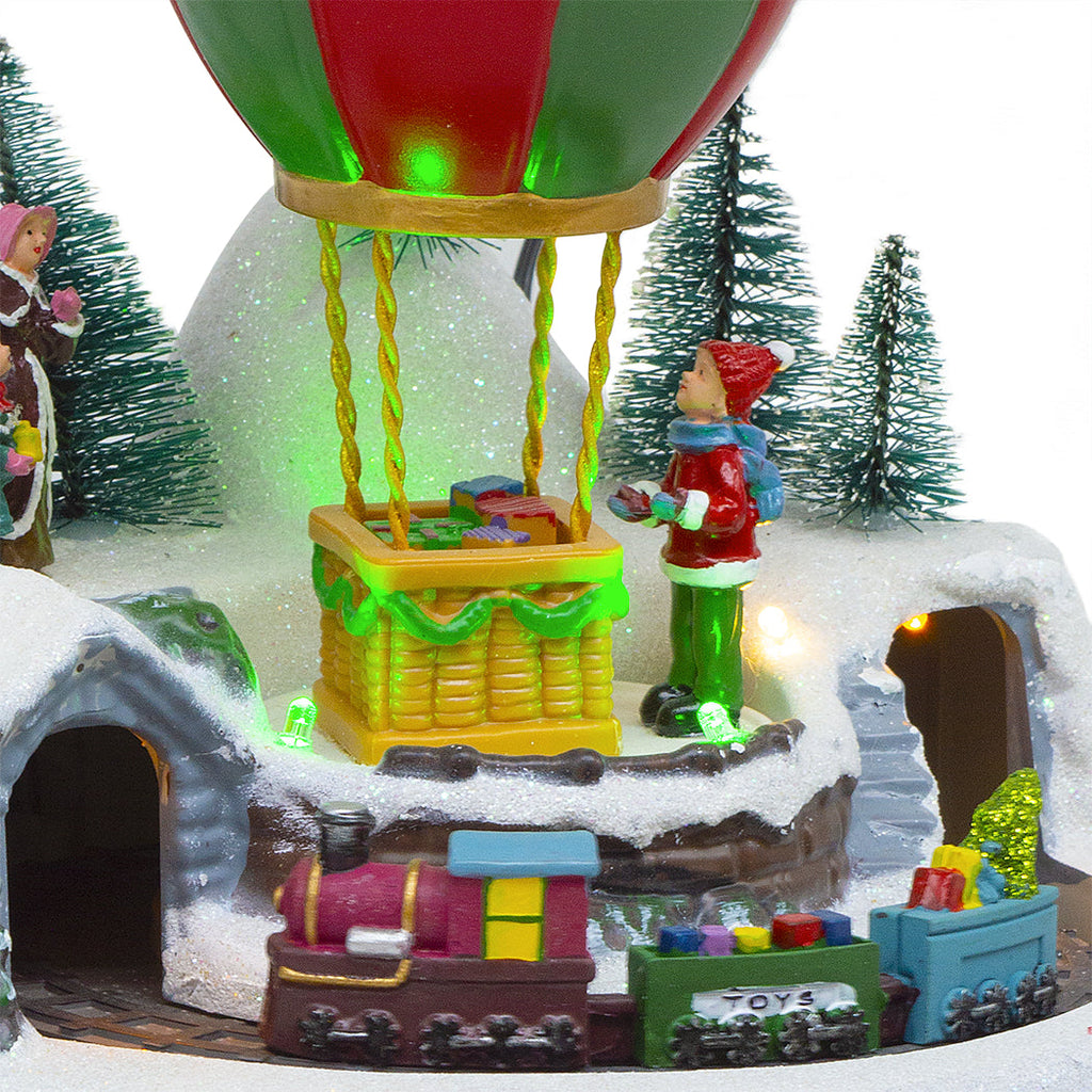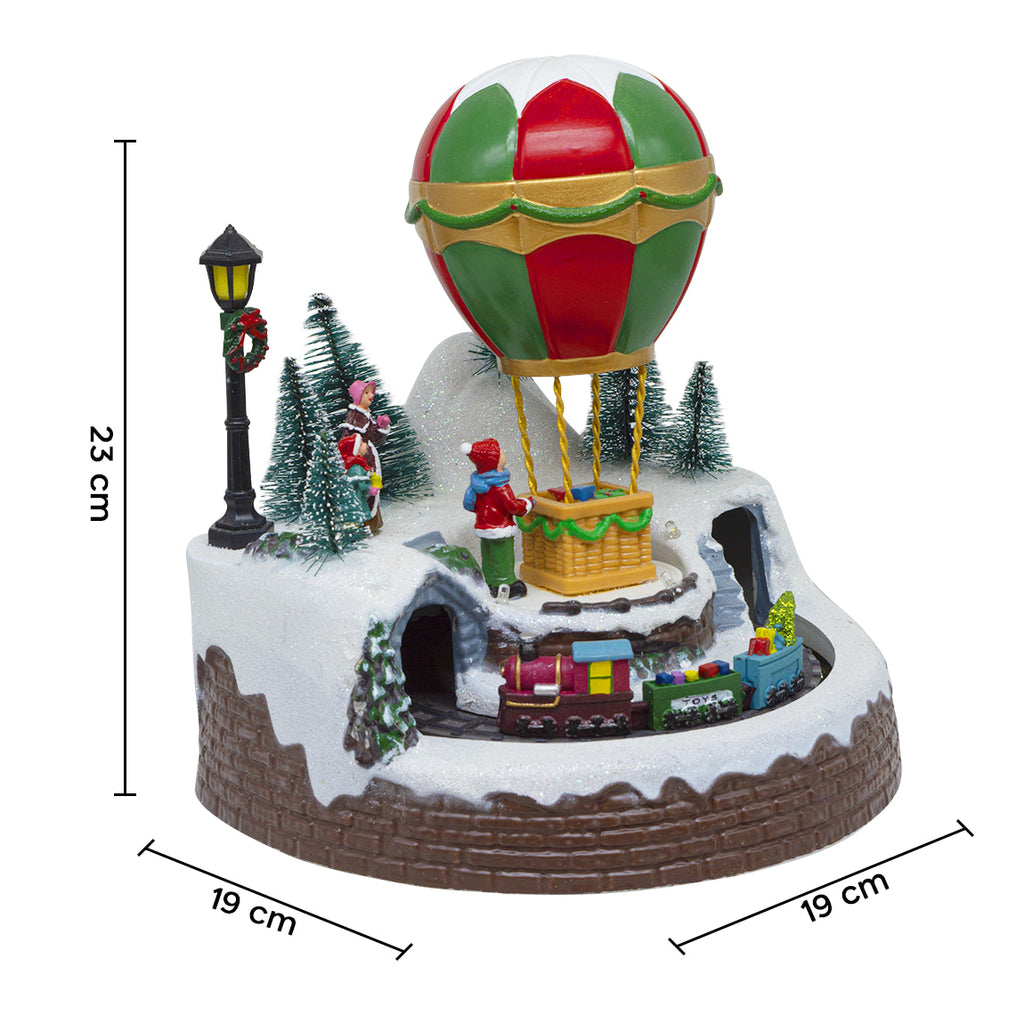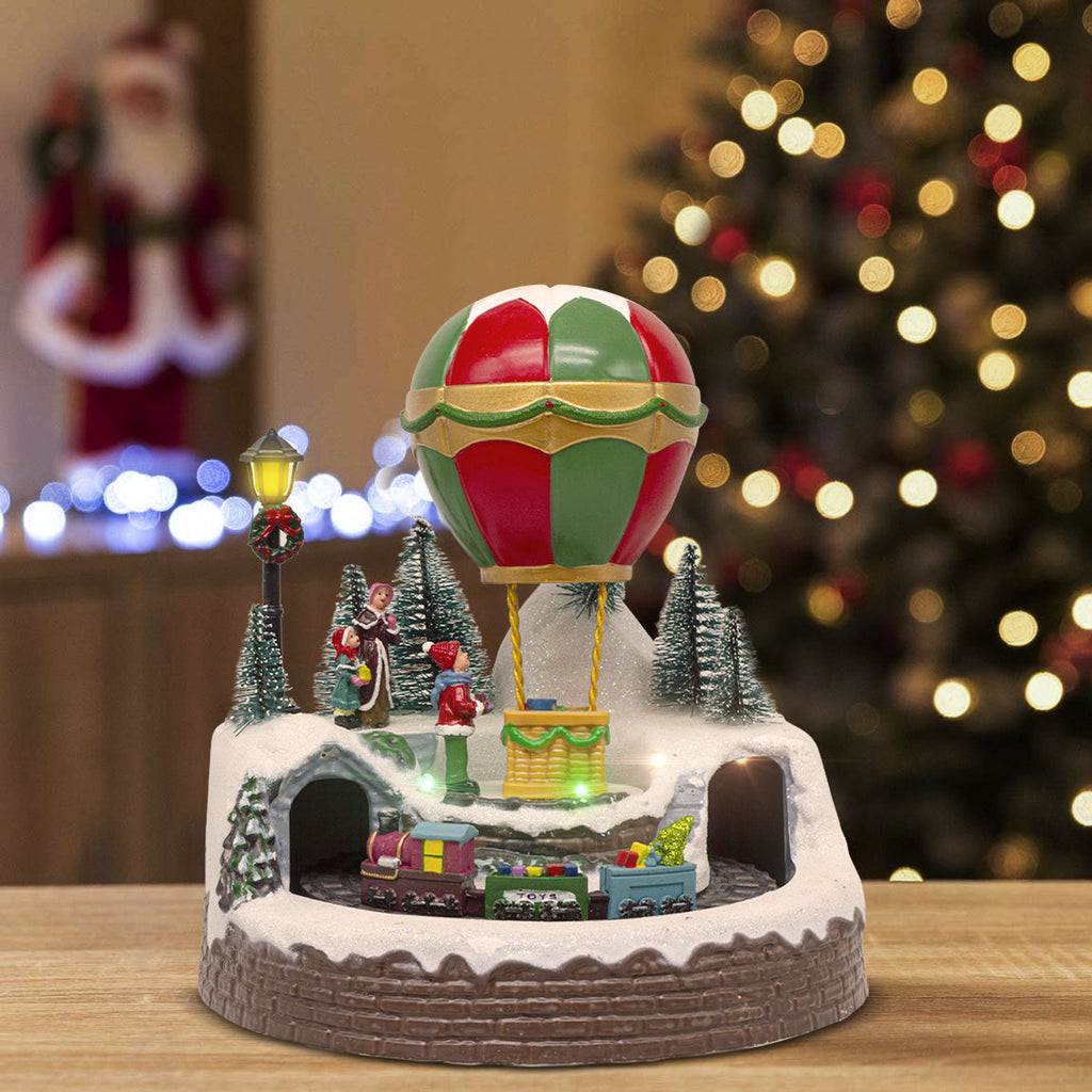 Montgolfière Village de Noël 19x19x23cm avec Lumières, Musique et Mouvement