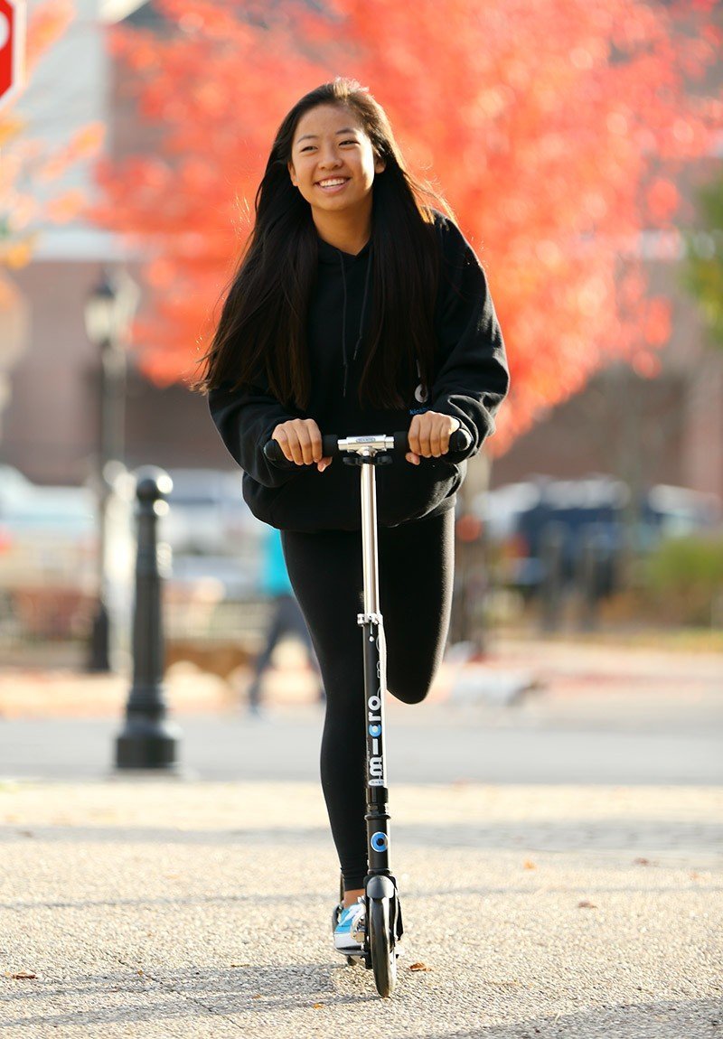 Trottinette pour adolescents et adultes avec grandes roues. Repose-pieds plus bas pour assurer une posture plus confortable et ergonomique. Poids 4,9 kg. Capacité maximale 100 kg.