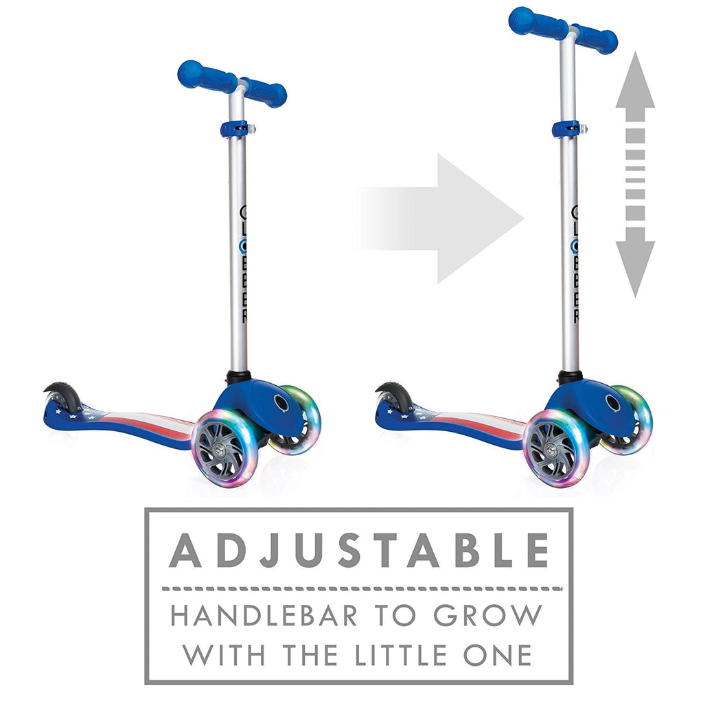 Trottinette à 3 Roues Eclairage LED Double Injection 3 Hauteurs Max 50Kg Globber FIRST Fantasy Lights Up USA Bleu