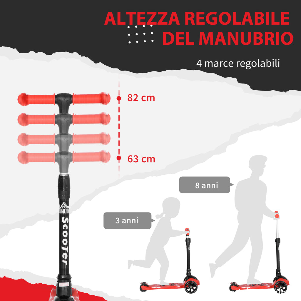 Trottinette Enfant 3 Roues 54,7x32,5x59-69 cm avec Roues Lumineuses Rouge