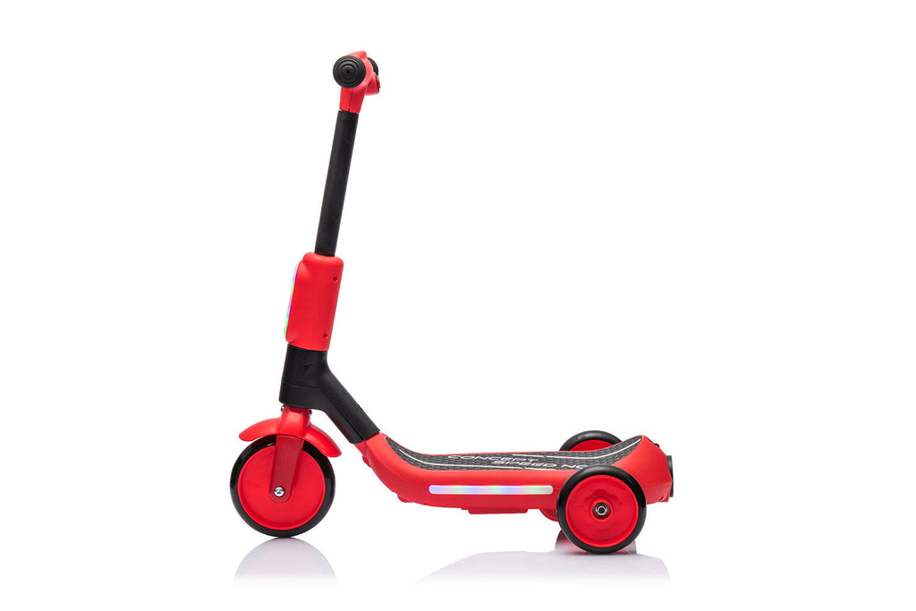 Monopattino Deluxe elettrico dotato di 3 ruote, 1 davanti e 2 dietro per una maggiore stabilità. Dotato di illuminazione con luci LED Multicolore per un'esperienza di gioco divertente. La batteria da 6V4 5Ah permette di utilizzarlo in modalità elettrica. Kit protezioni e casco incluso.