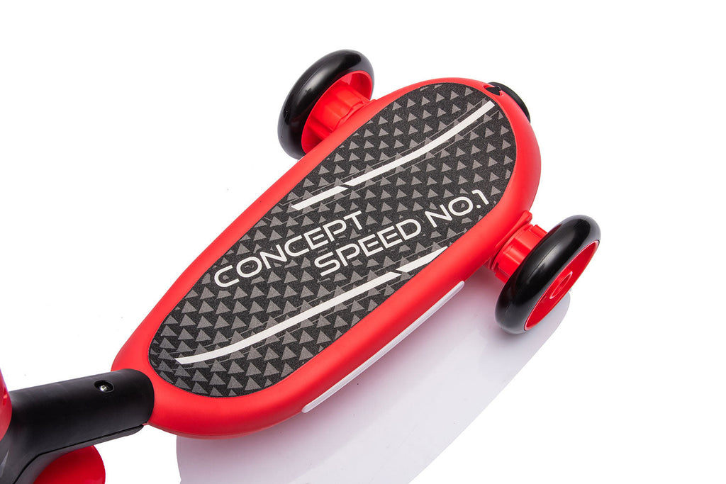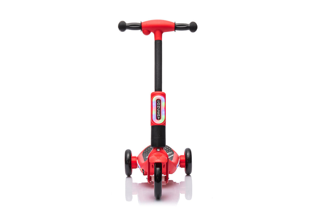 Monopattino Elettrico Deluxe a 3 Ruote 67x32x69 cm Luci LED RGB Casco e Protezioni Incluse Rosso