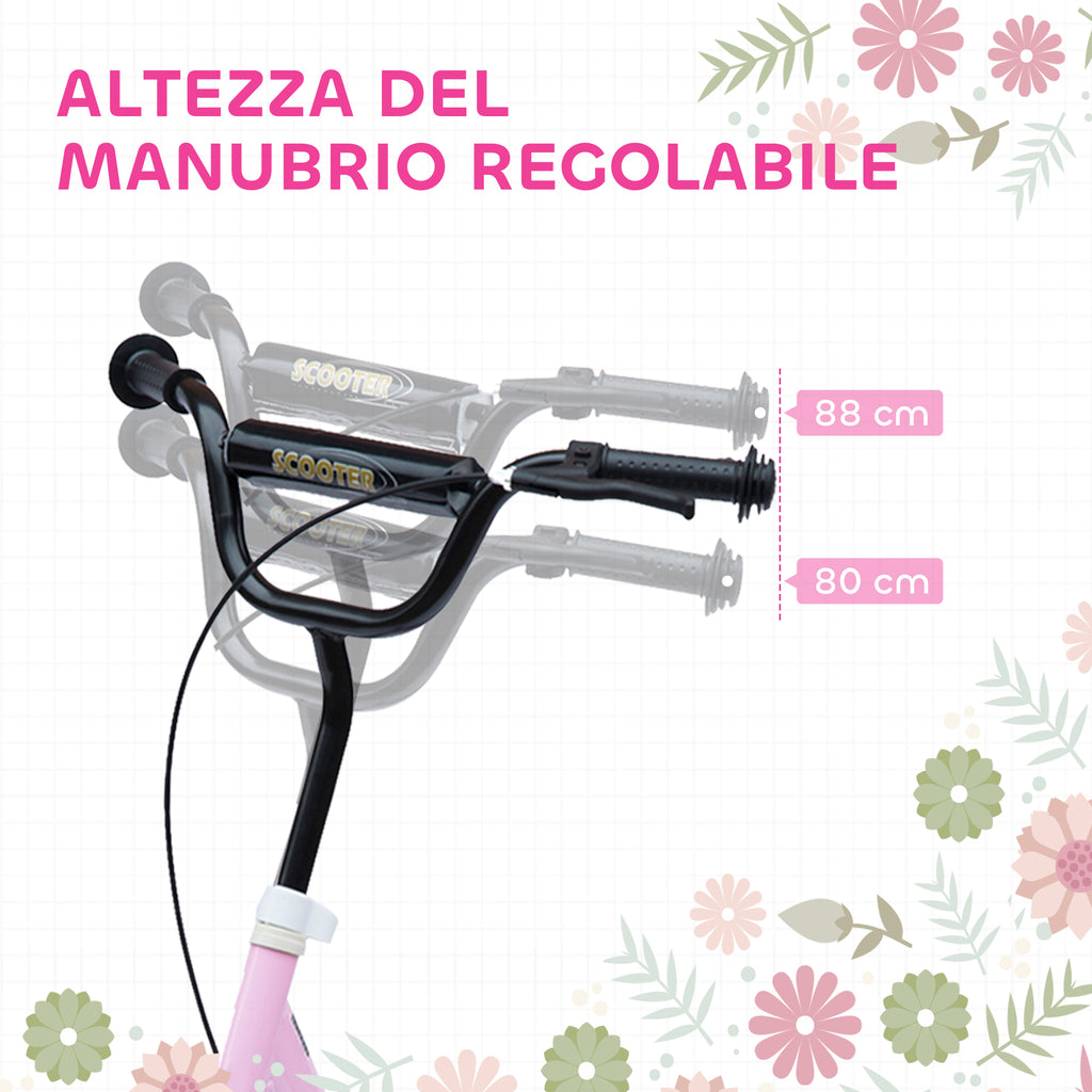 Monopattino per Bambini 5-12 Anni 120x52x80-88 cm Supporta fino a 50 kg Telaio in Acciaio Rosa