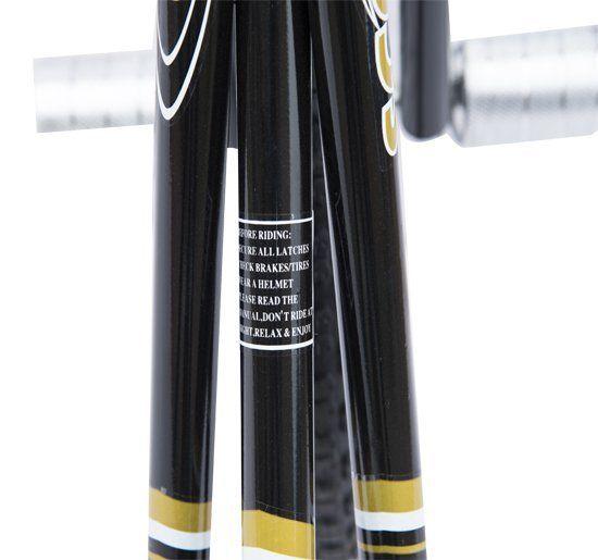 Le scooter est équipé d'un cadre en métal très stable, d'un frein de guidon, d'un guidon de haute qualité et sûr avec hauteur réglable et d'une béquille pour un stationnement en toute sécurité.