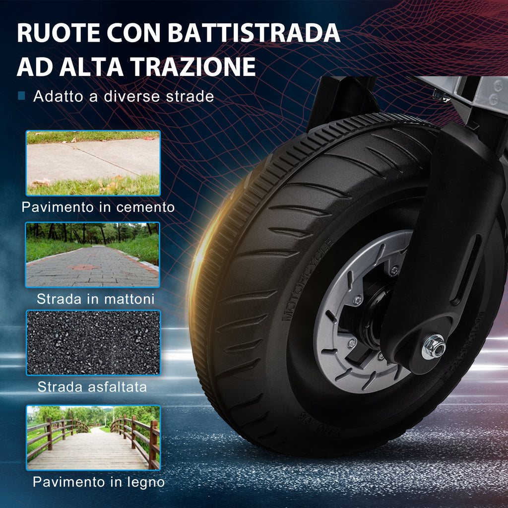 - ROTELLE: Le due rotelle della moto elettrica per bambini rendono l'esperienza facile e divertente e aiutano a sviluppare la coordinazione e l'equilibrio già da subito. È possibile arrivare fino a 3 km/h in sicurezza, un po' più lentamente della camminata media di un adulto