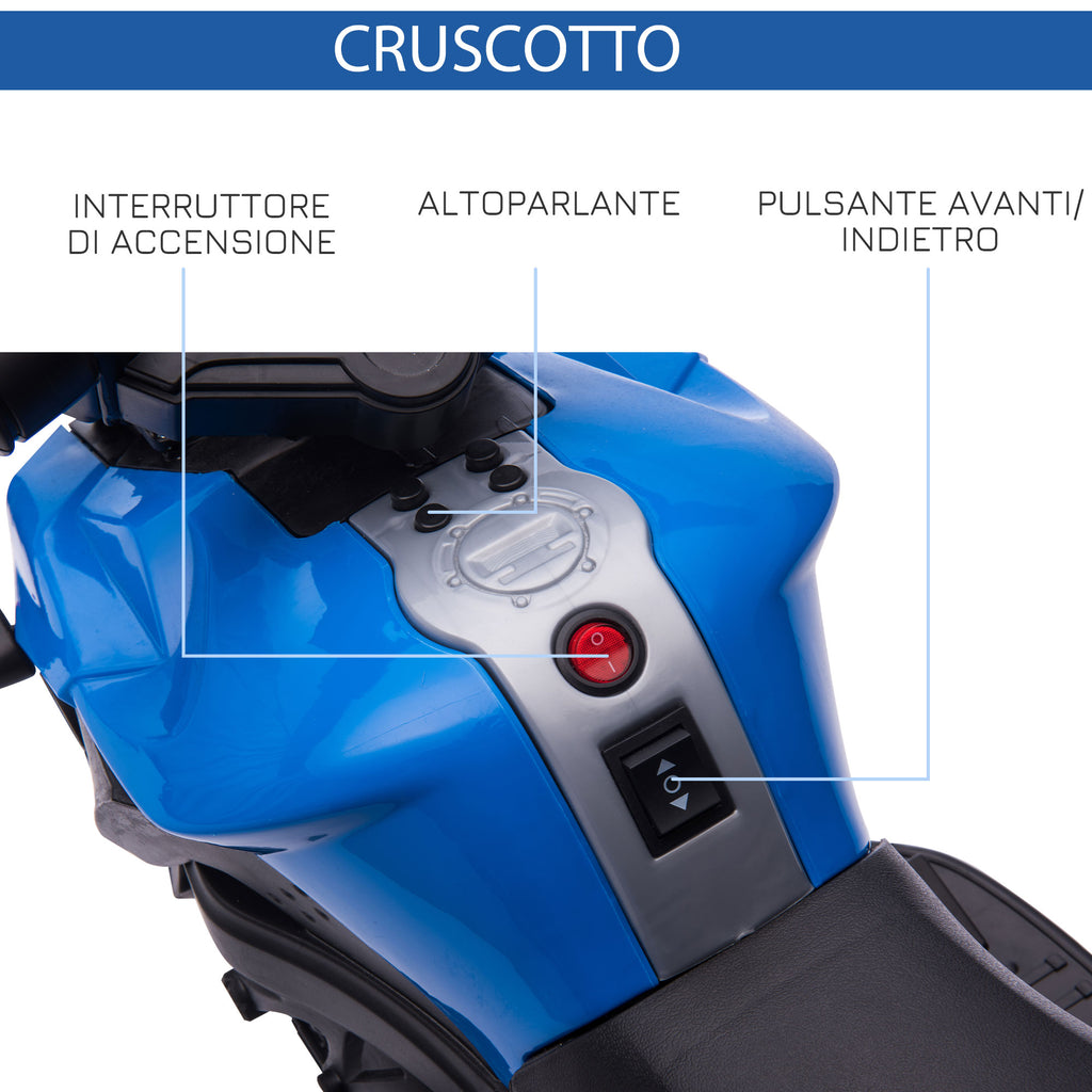 Moto Elettrica per Bambini 6V con Fari e Clacson Blu