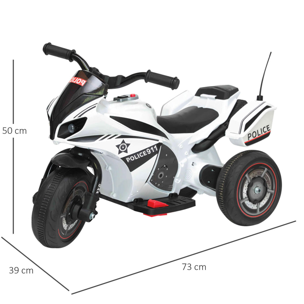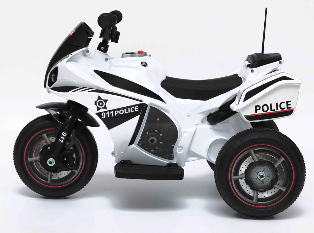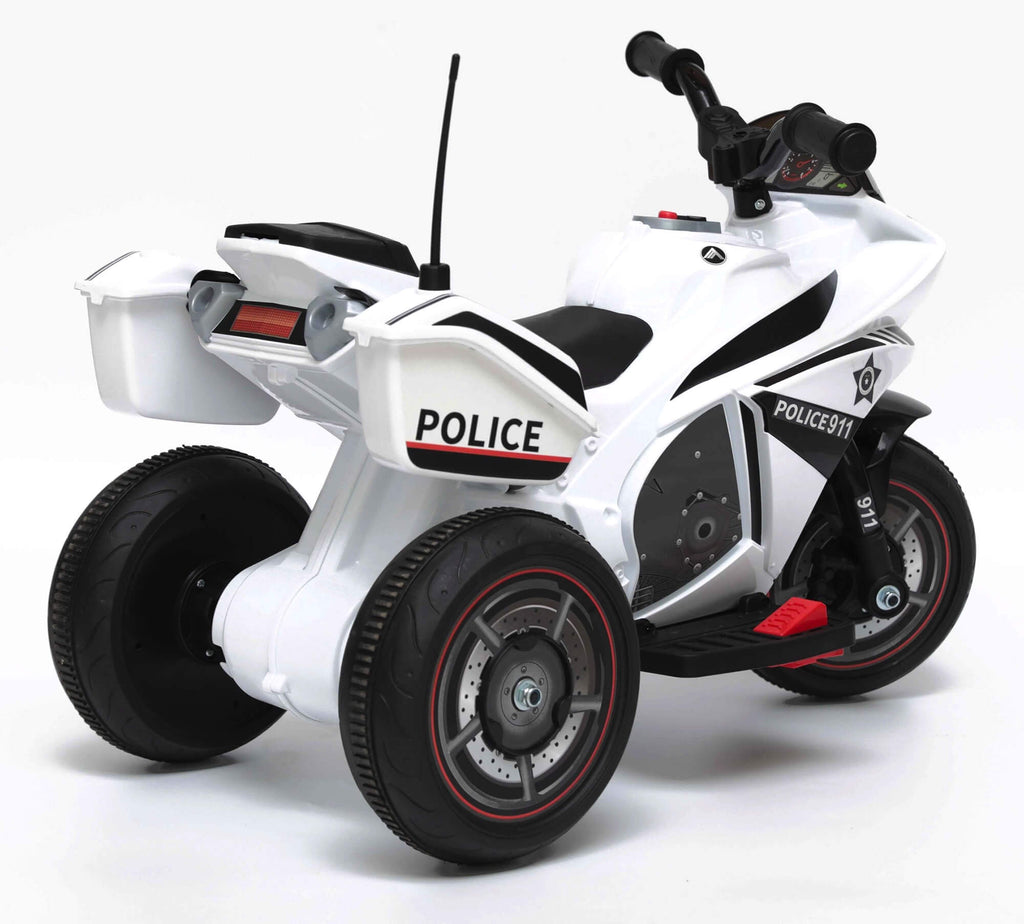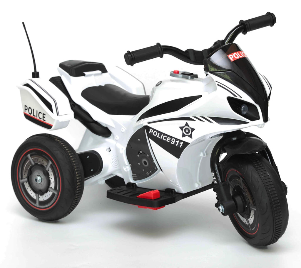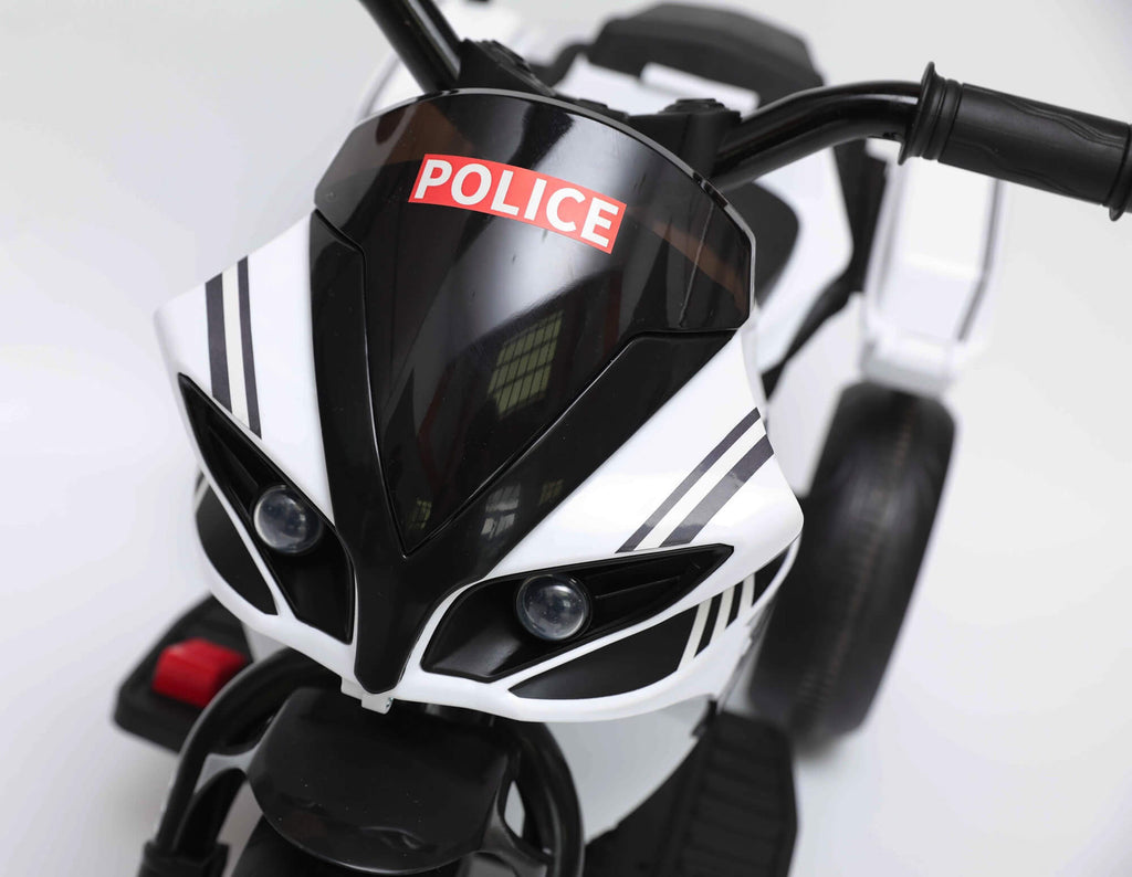 Belle Mini moto électrique pour enfants avec 3 roues modèle Police. Très joli design avec lumières et musique, il émerveillera vos enfants en leur donnant la sensation de conduire comme les grands. La Mini Moto a une vitesse maximale de 3 KM-H avec pédale d'accélérateur à une vitesse et sélecteur avant et arrière, il y a un bouton pour les effets lumineux et sonores LED et un lecteur mp3, idéal pour faire vivre à vos enfants l'expérience d'un guide sûr et amusant à utiliser à l'intérieur et à l'extérieur, dans le jardin ou sur la terrasse.