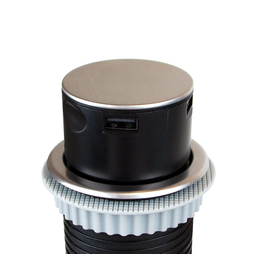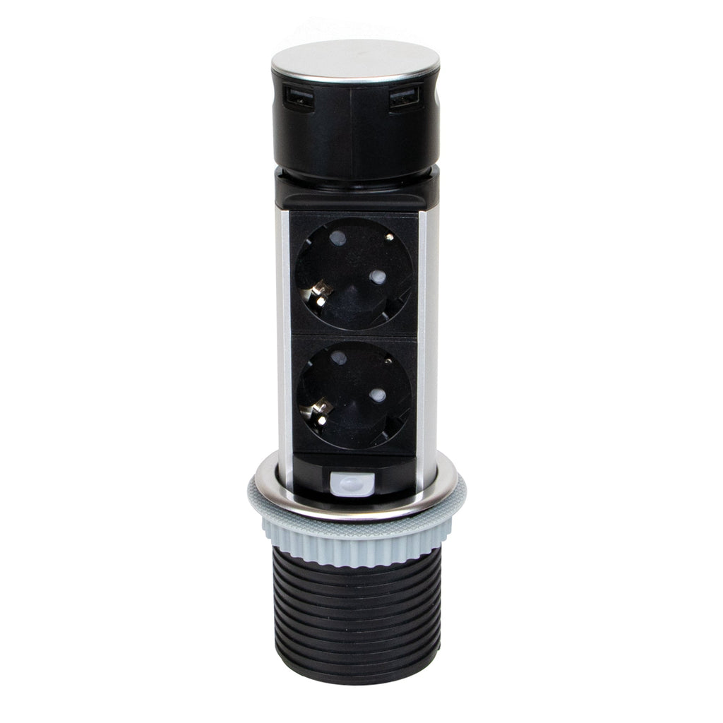 Multiprise tourelle avec 2 prises USB escamotables pour bureau en acier et plastique Emuca