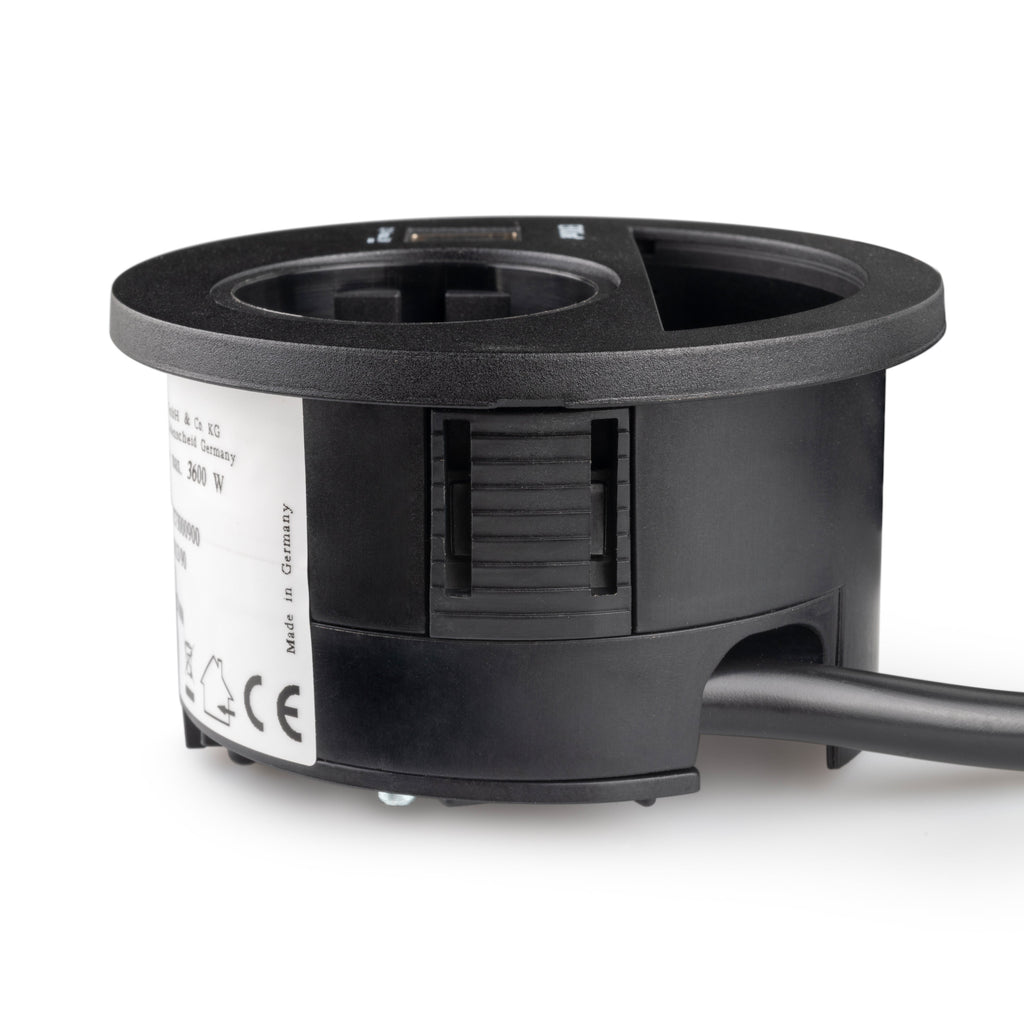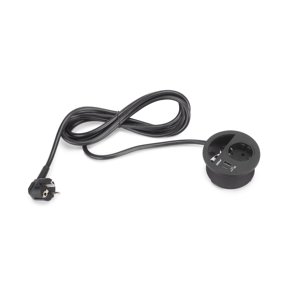 Prise multiple avec presse-étoupe idéale pour les meubles de bureau et de maison. Il est conçu pour vous permettre d'avoir toujours une prise de courant, deux connecteurs USB et tous les câbles dont vous avez besoin à portée de main.