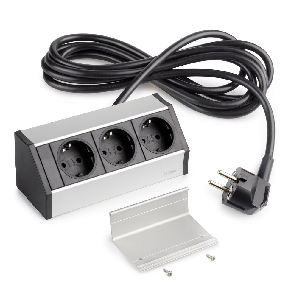 Comprend un câble de connexion de 3 m avec fiche d'angle avec prise 230 V AC 50 Hz qui reste cachée lors du passage dans l'angle derrière le profilé.