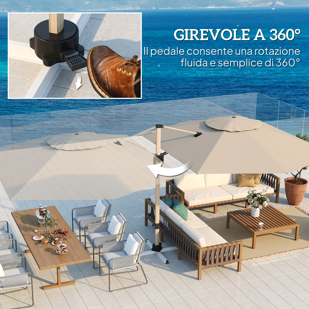 - CONTROLLA L'OMBRA: Il nostro ombrellone a braccio presenta un meccanismo a manovella fluido per l'apertura ed è inclinabile in 5 posizioni. Inoltre, è inclusa una base girevole a 360° (comandata da un pedale) per garantire l'ombra perfetta in ogni momento
