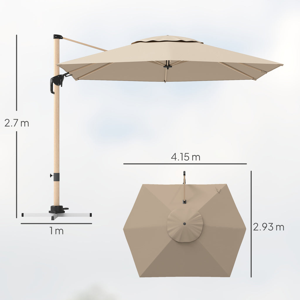 Ombrellone a Sbalzo Inclinabile con Manovella 415x293x270 cm con Base a Croce Kaki