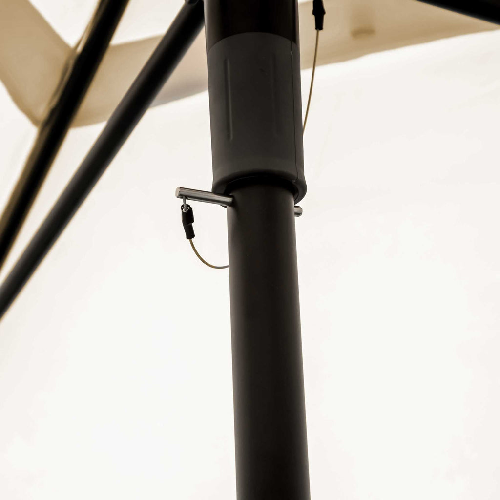 Il nostro ombrellone presenta una struttura in alluminio antracite con copertura in poliestere impermeabile. Il rivestimento in PA beige conferisce un tocco elegante, mentre il palo e le 4 stecche in alluminio garantiscono resistenza e durata. Con apertura a spinta manuale e superficie anodizzata a specchio, è perfetto per creare una zona d'ombra in giardino o in terrazza. Si raccomanda di utilizzare una base per una maggiore stabilità.