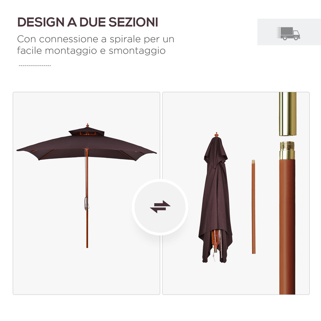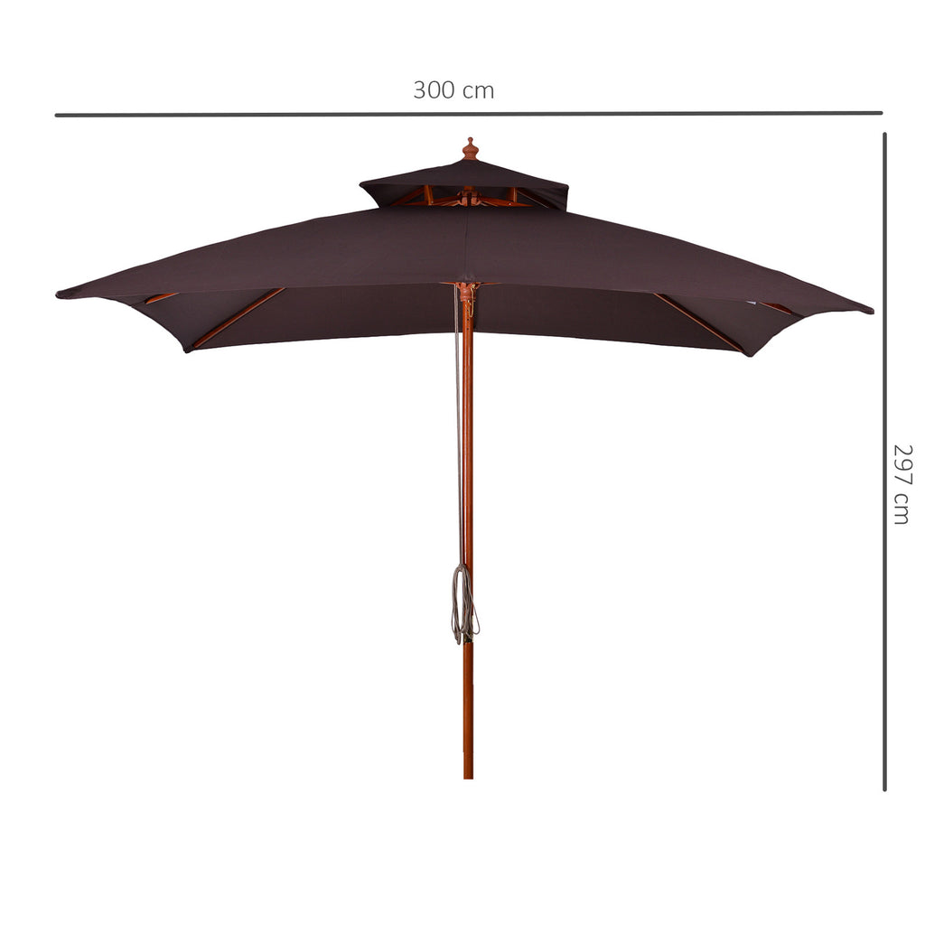 Parasol de Jardin 3x3m 8 Baleines en Bois Marron