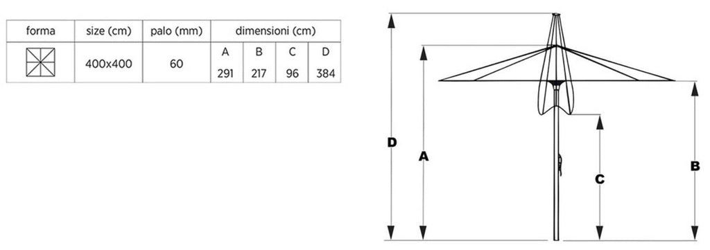 Parasol de jardin 4x4m en mât d'aluminium Ø60 mm Auvent en polyester Brera Ecrù