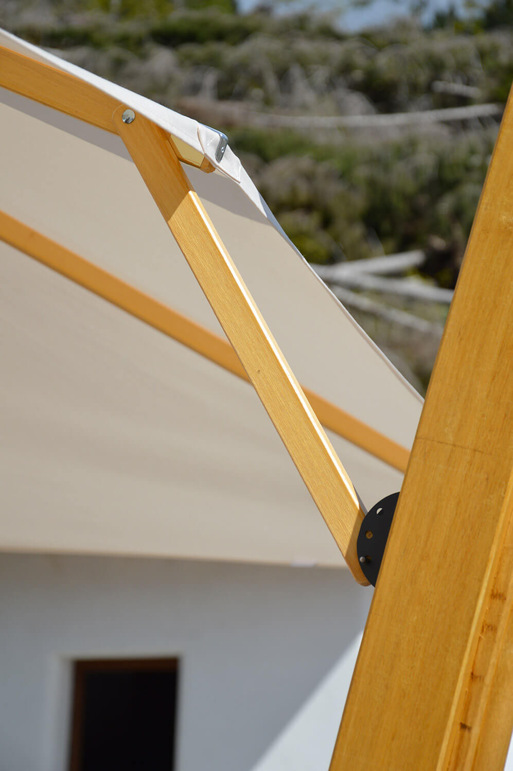 - Parapluie à mât latéral en bois Tokyo avec toile rectangulaire de 2,5x3,5 mètres sans pendentif