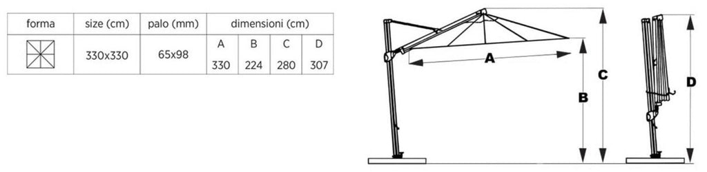 - Ouverture 3,3 x 3,3 m surface totale de l'ombrage 11 m2