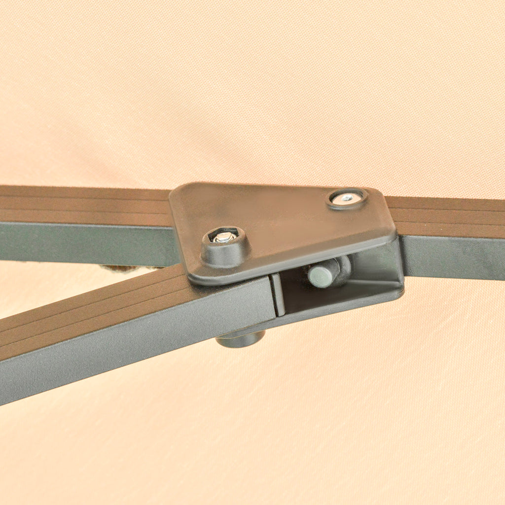 - ROTATION À 360° : Le parasol a une base en croix et une pédale qui permet de faire pivoter le parasol à 360°, pour mieux s'abriter de la lumière. (Remarque : le parasol est équipé d'une base en croix, les dalles de ballast ne sont pas incluses. Il est recommandé d'utiliser des dalles de ballast de plus de 100-110 kg)