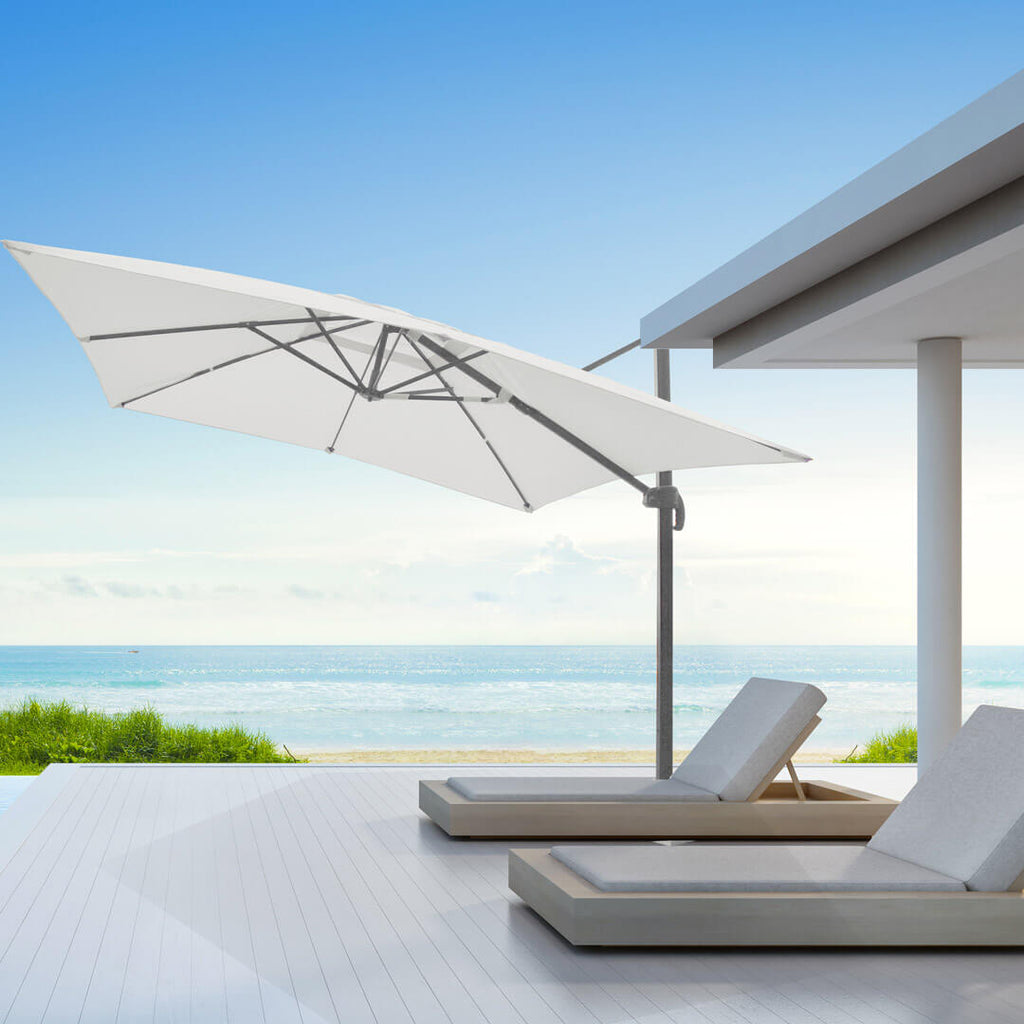 - Parasol en aluminium décentralisé avec toile carrée de 3x3 mètres sans pendentif