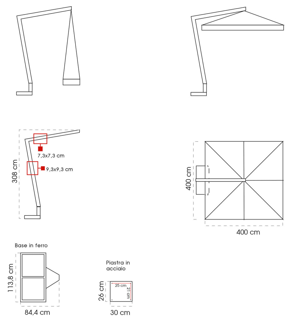 - Parapluie à mât latéral en bois San Francisco avec toile carrée de 4x4 mètres avec pendentif