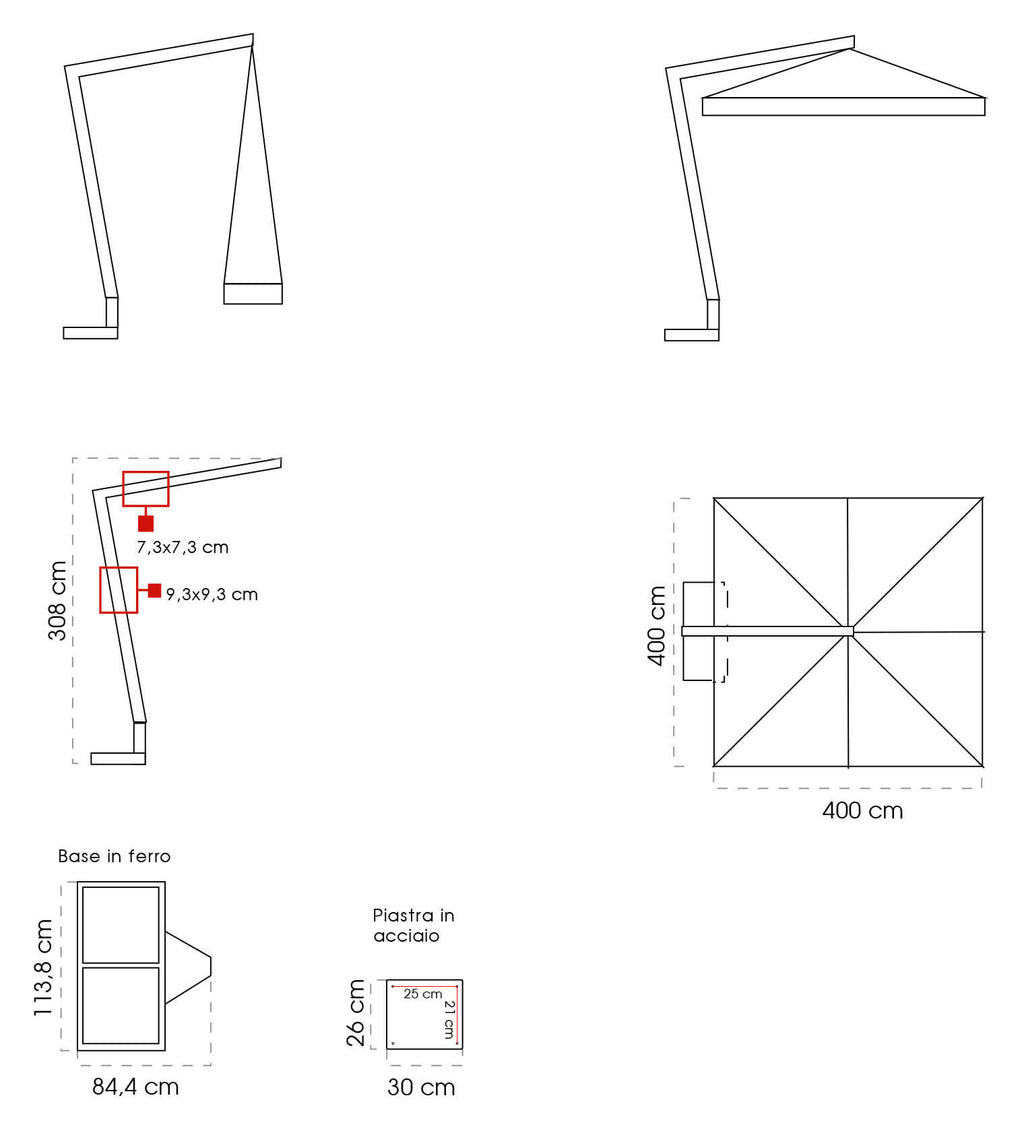 - Parapluie à mât latéral en bois San Francisco avec toile carrée de 4x4 mètres sans pendentif