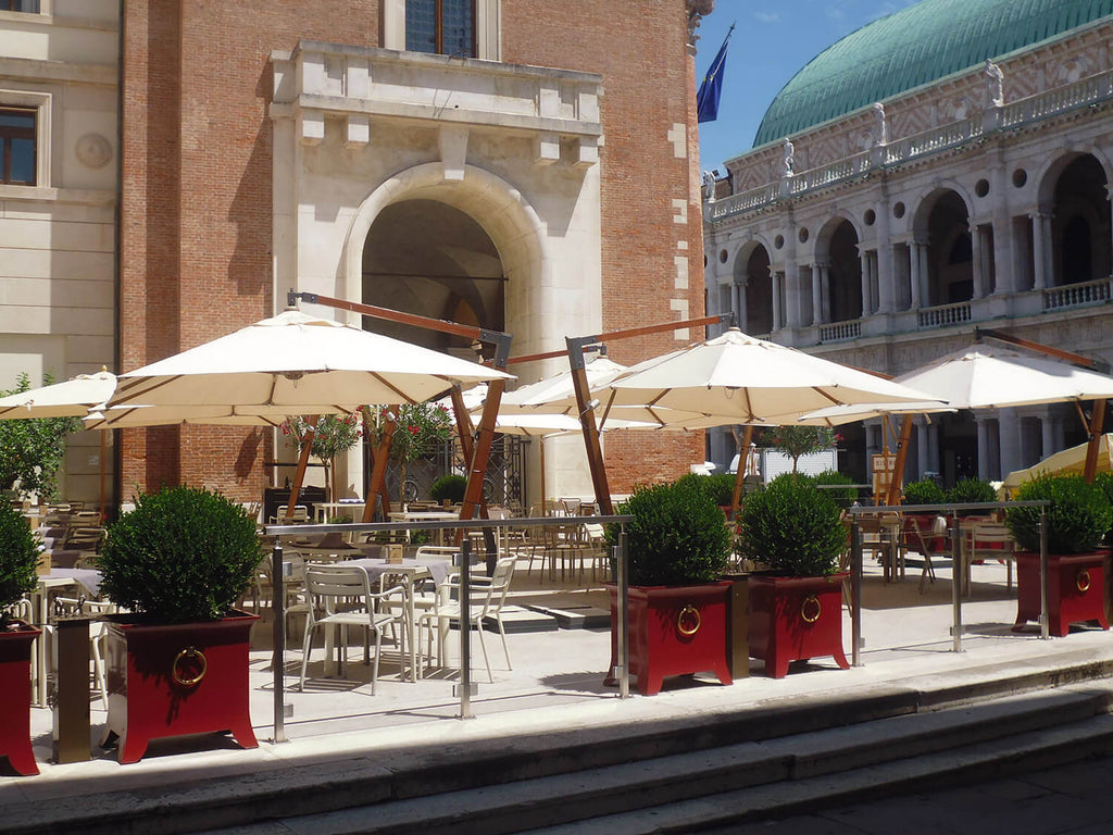 Parasol décentré pour cafés et bistrots, idéal pour terrasses et jardins, modèle carré SAN FRANCISCO.