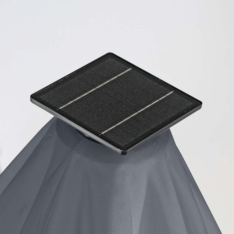 Inoltre, sulla parte superiore dell'ombrellone è presente un pannello solare.