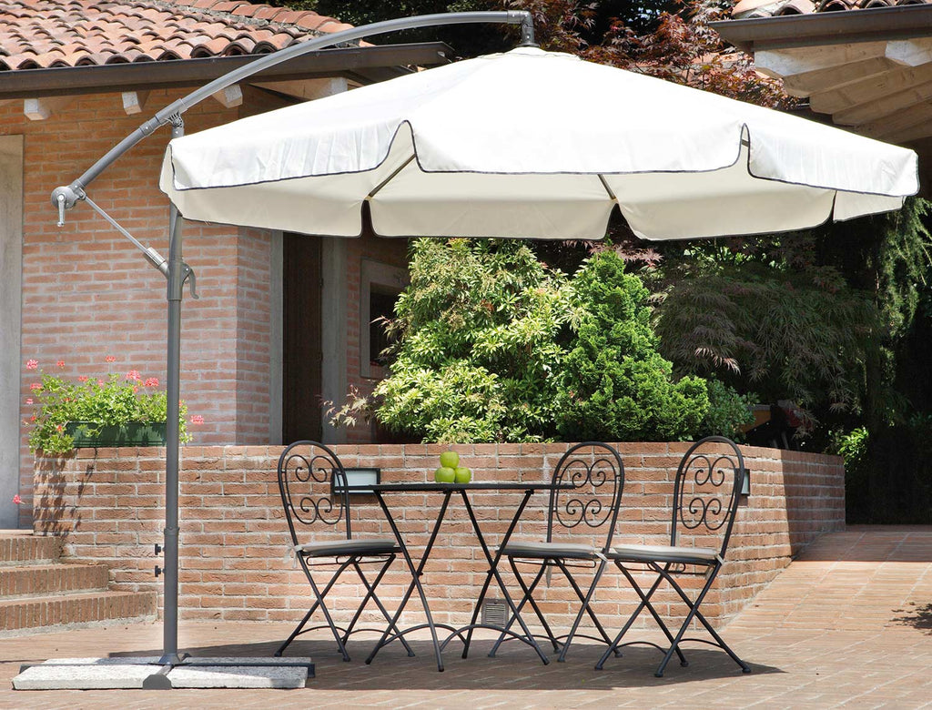 Parasol de Jardin Ø3m Décentralisé Acier avec Manivelle Banane Vorghini Anthracite et Ecru
