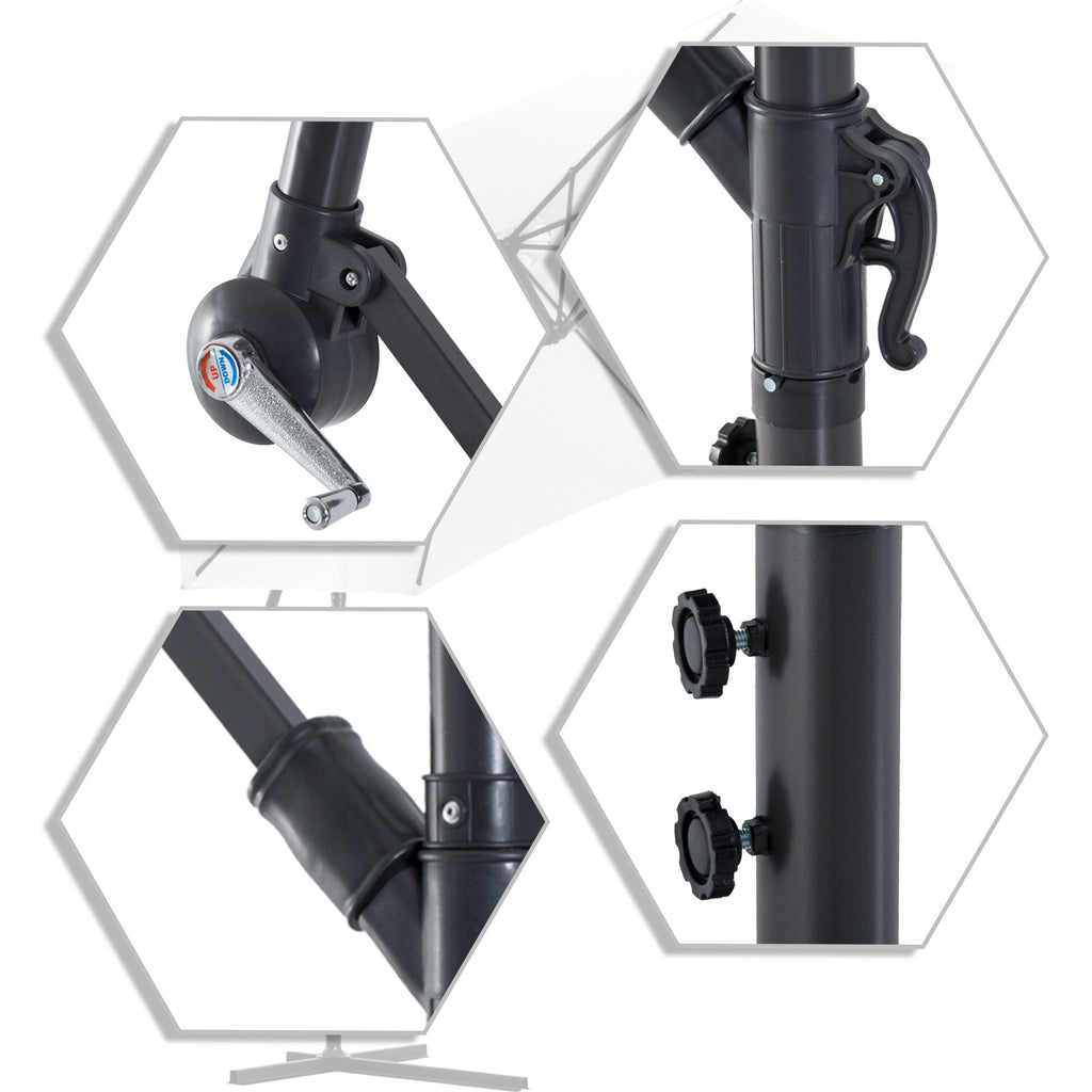 - ANGLE RÉGLABLE : La housse de ce parasol de jardin à bras est en polyester imperméable. L'angle de la tête du parapluie peut être ajusté pour offrir une couverture optimale contre le soleil.