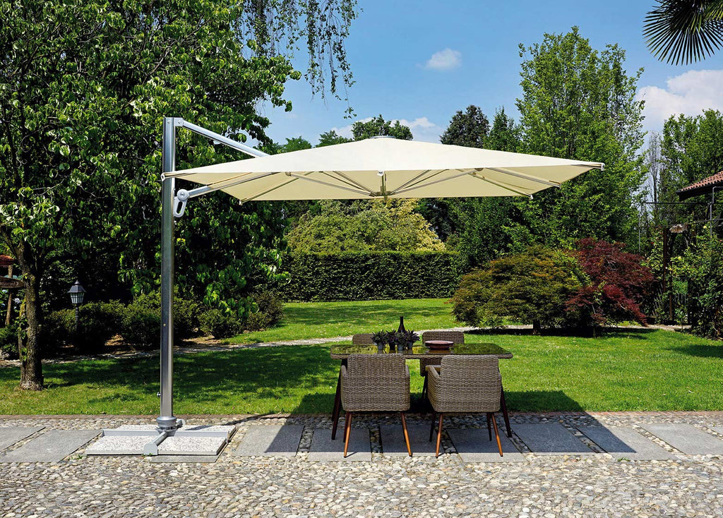 Parasol de jardin aluminium déporté 3X3m avec manche Vorghini ConTract Ecru