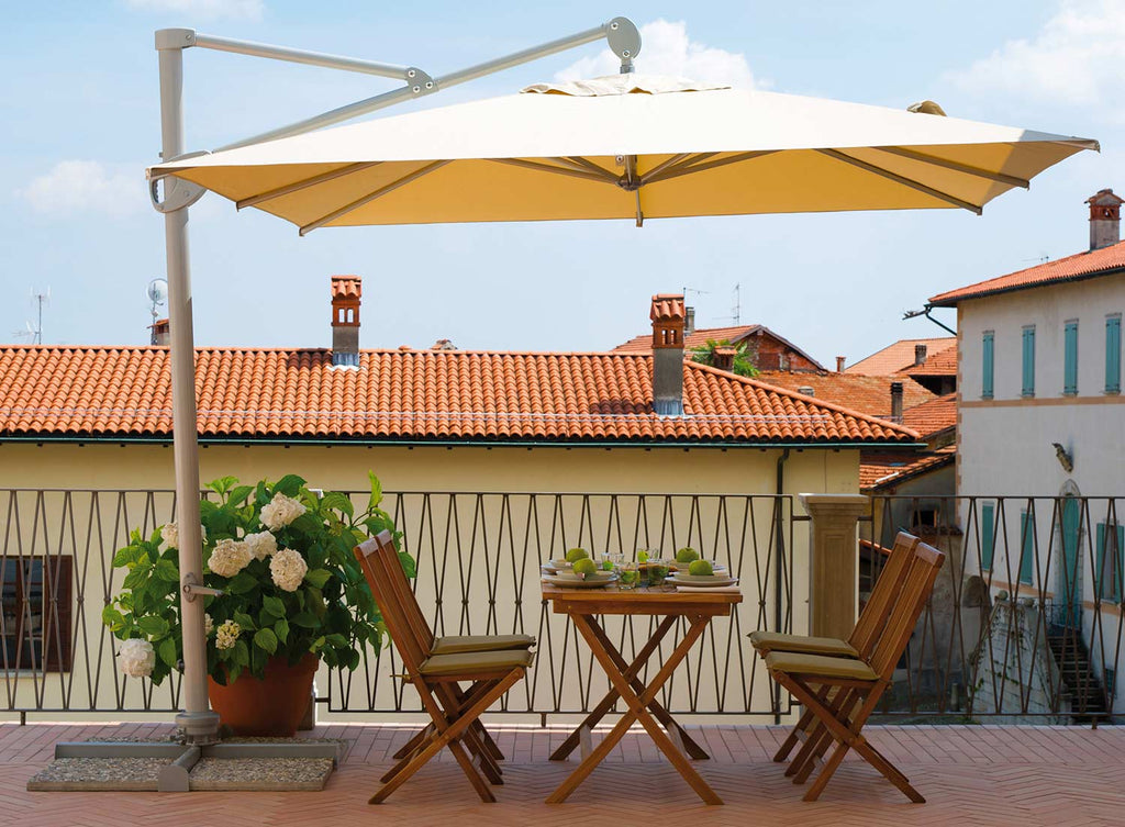 Parasol de jardin aluminium déporté 3X3m avec manche gris et écru Vorghini ConTract
