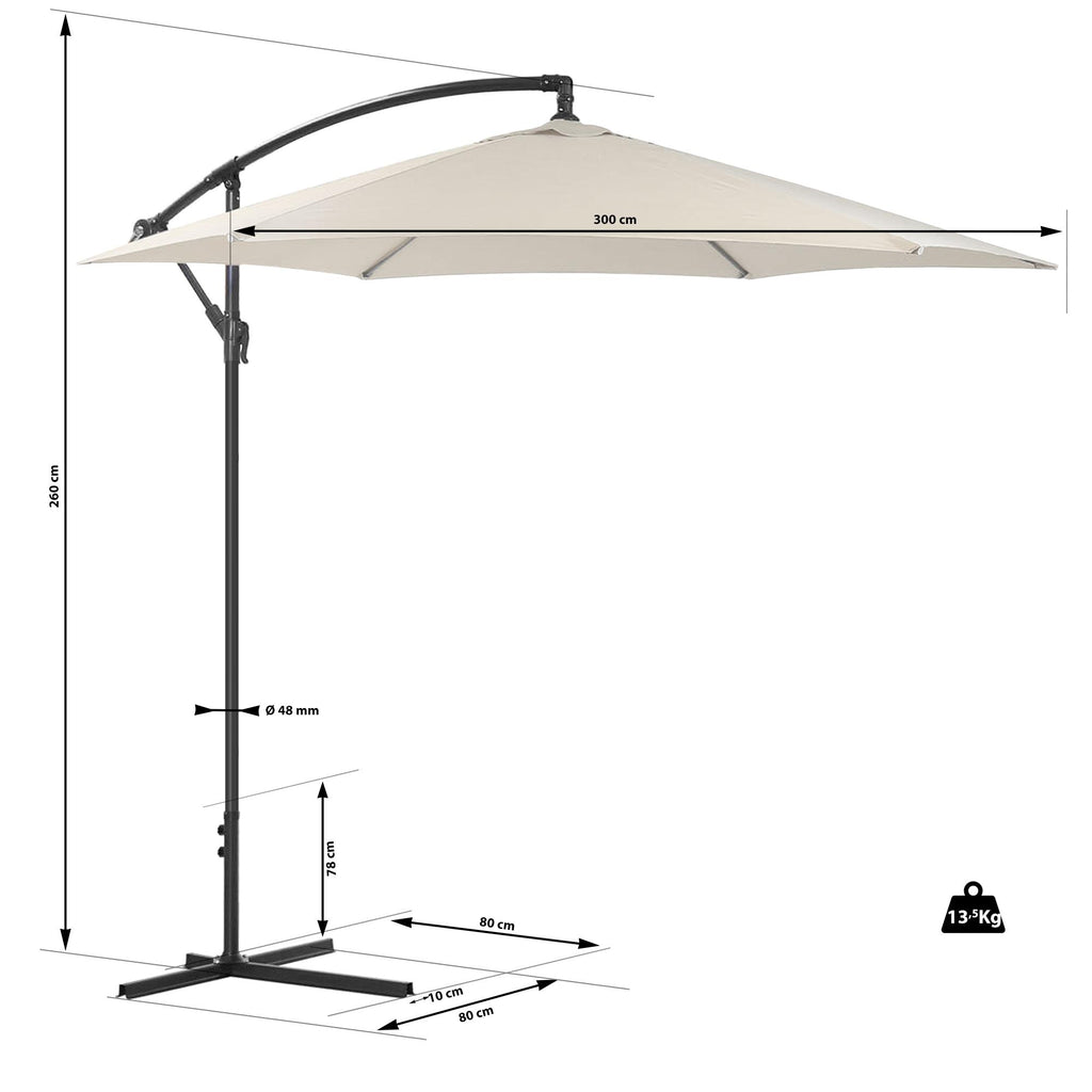 Caractéristiques Techniques Parasol de Jardin Décentralisé en Aluminium Ø3m Rizzetti Crème