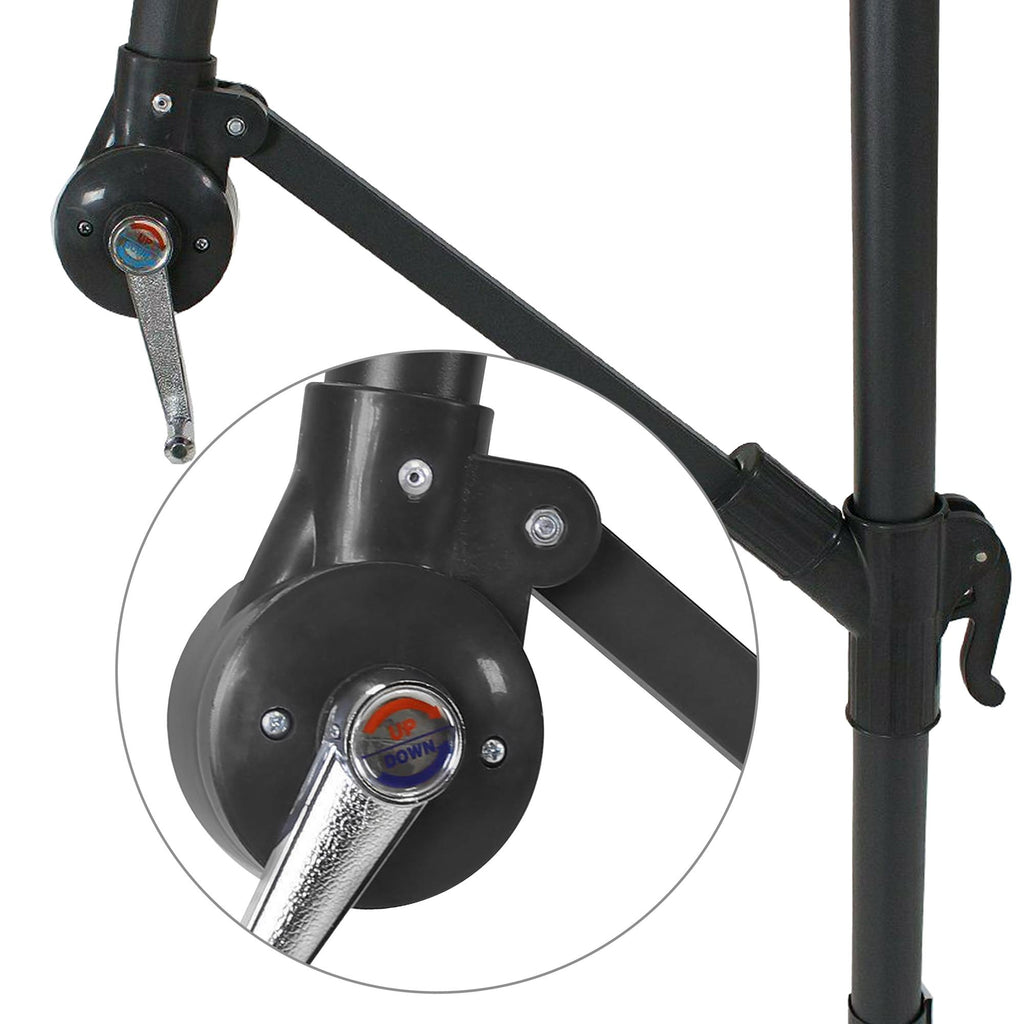 Parasol de jardin décentralisé avec structure porteuse solide en aluminium, housse en polyester 180 g/m2, imperméable, résistant aux hautes et basses températures, qui garantit une excellente protection contre les rayons UV.