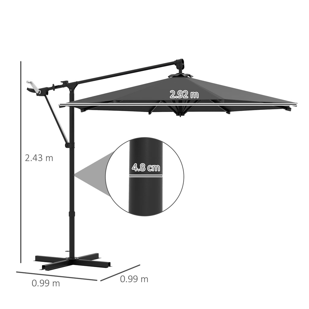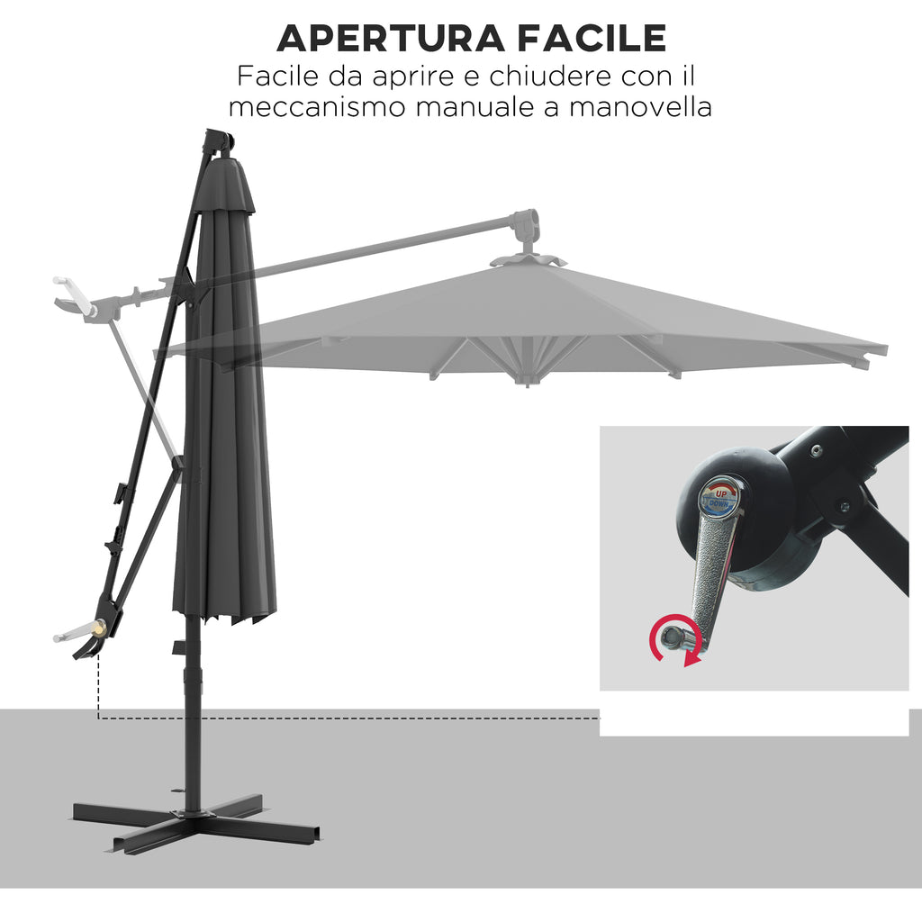 Ombrellone da Giardino Decentrato Ø2,92x2,43m in Poliestere e Acciaio Grigio